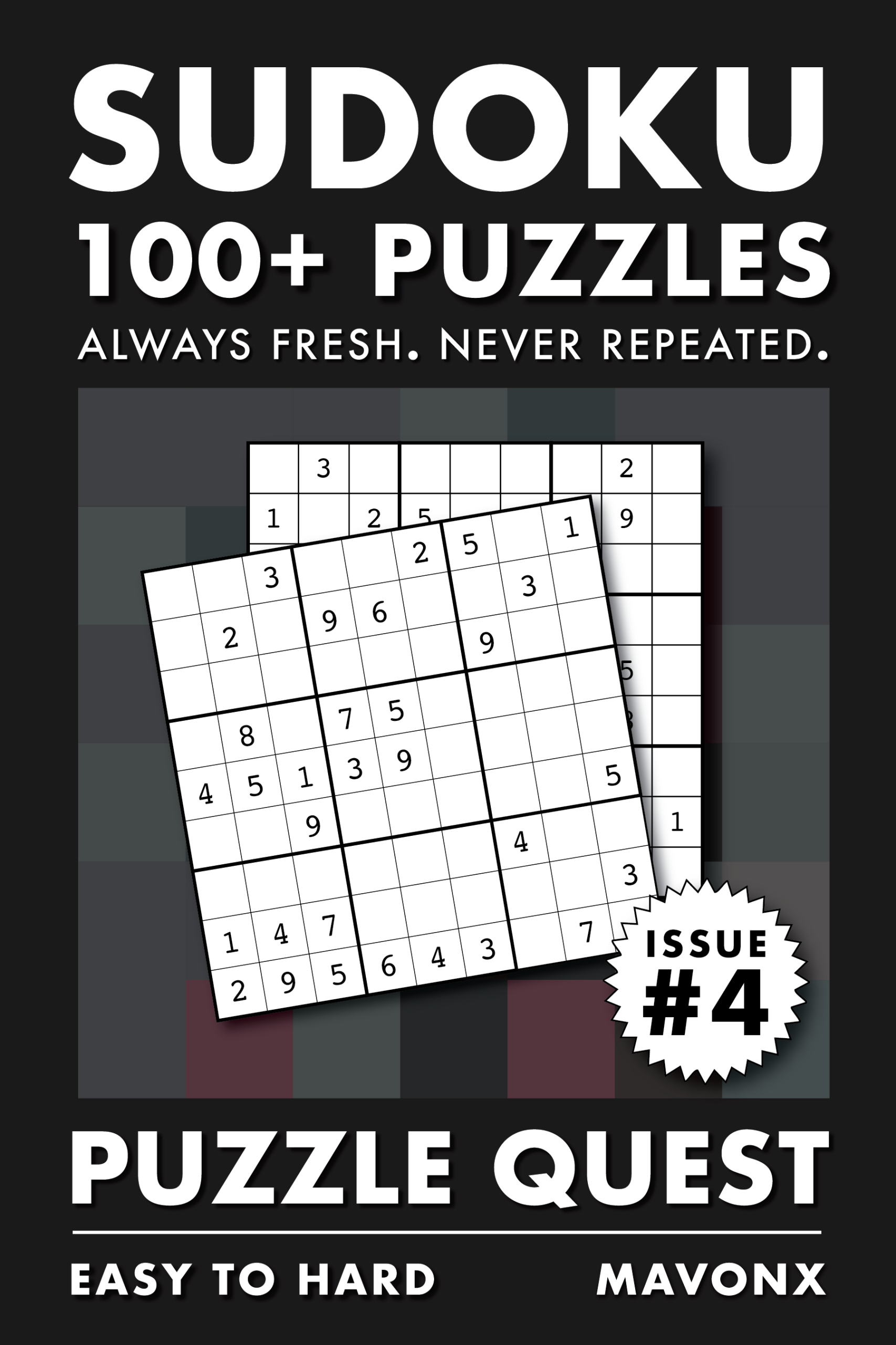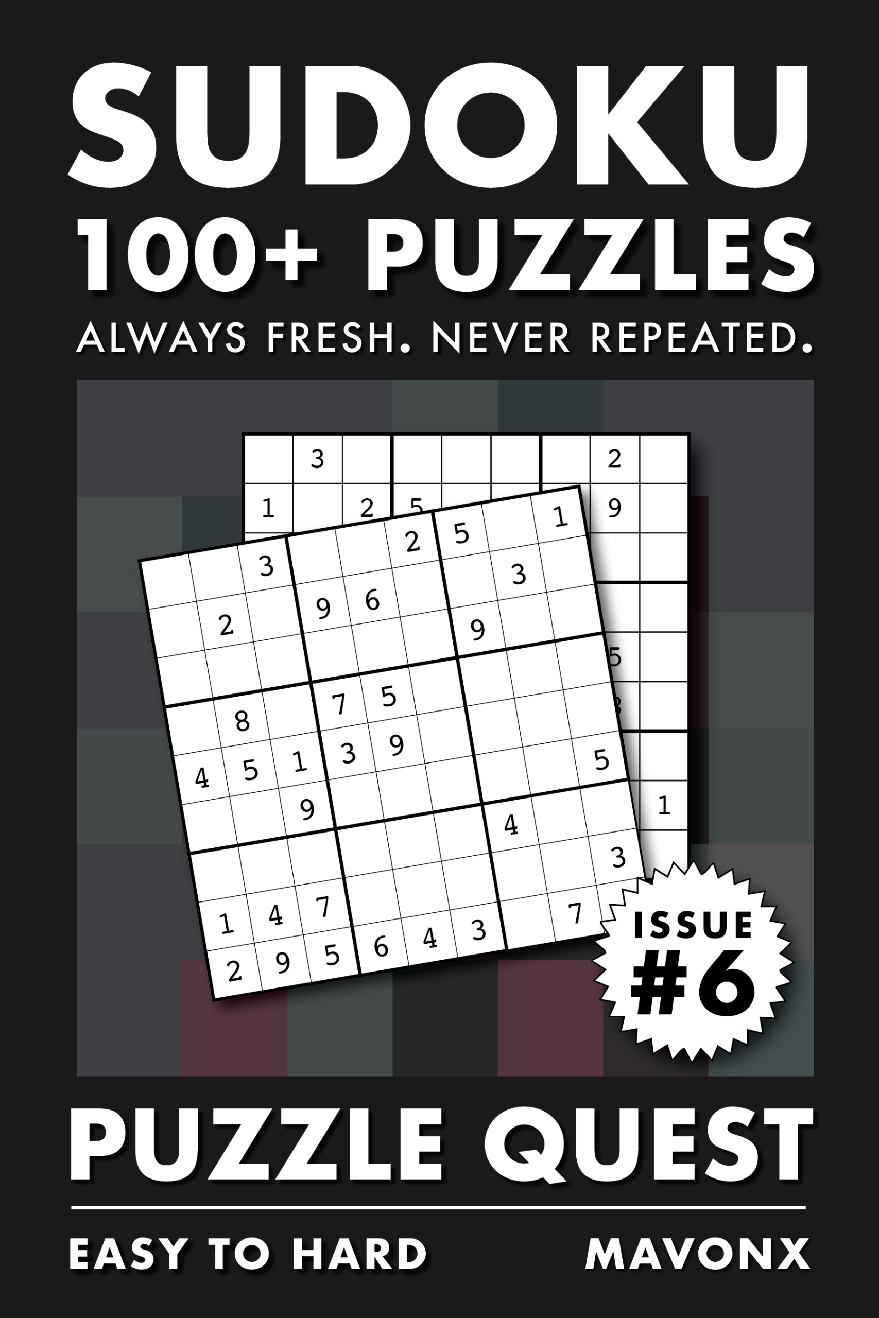 Dive into MavonX’s Puzzle Quest, a series of 12 books. Each book contains 108 carefully crafted Sudoku puzzles, perfect for a month of daily brain-teasing fun. Whether you’re a beginner or a seasoned solver, these puzzles are designed to provide a rewarding challenge every day. At just $5.99 USD per book, Puzzle Quest offers unbeatable value for Sudoku enthusiasts. Click on the image to purchase on Amazon and start your adventure today!