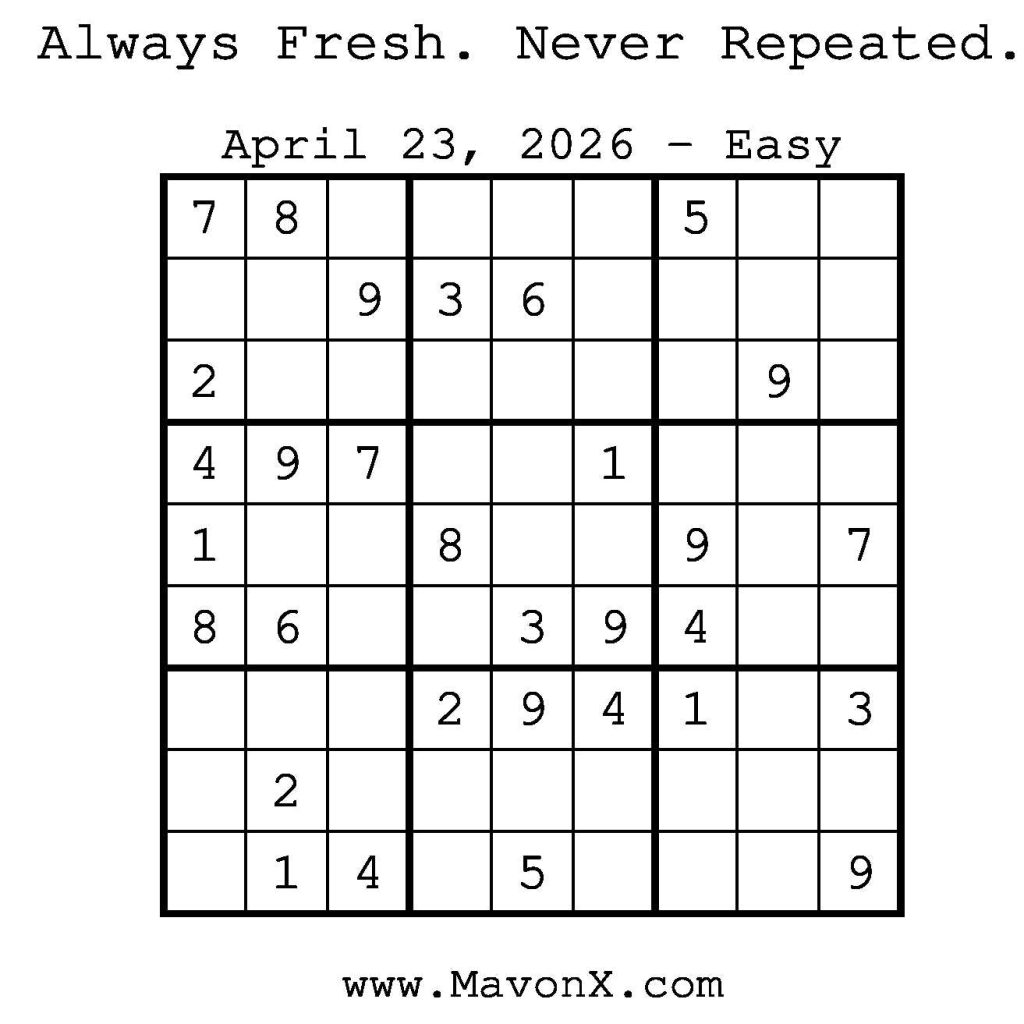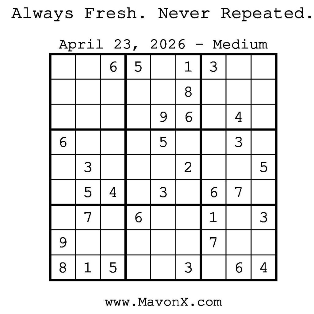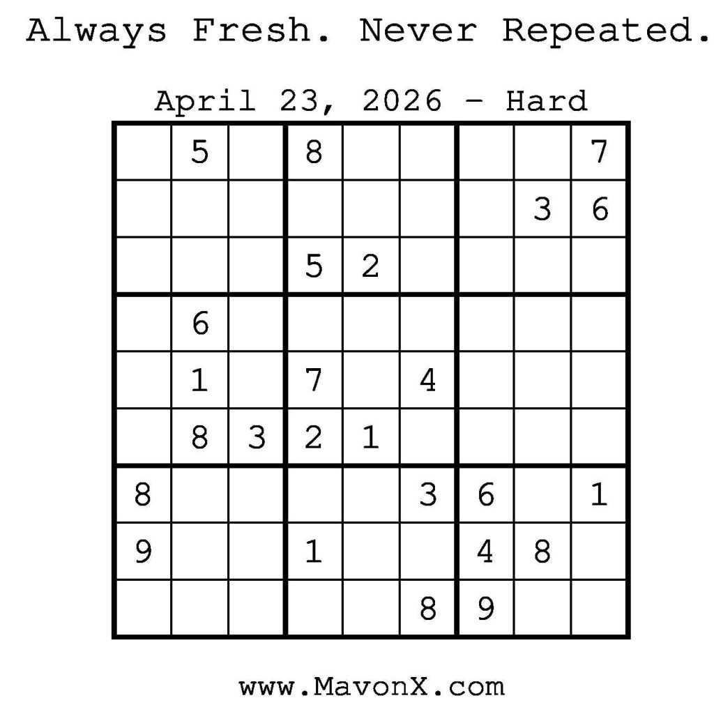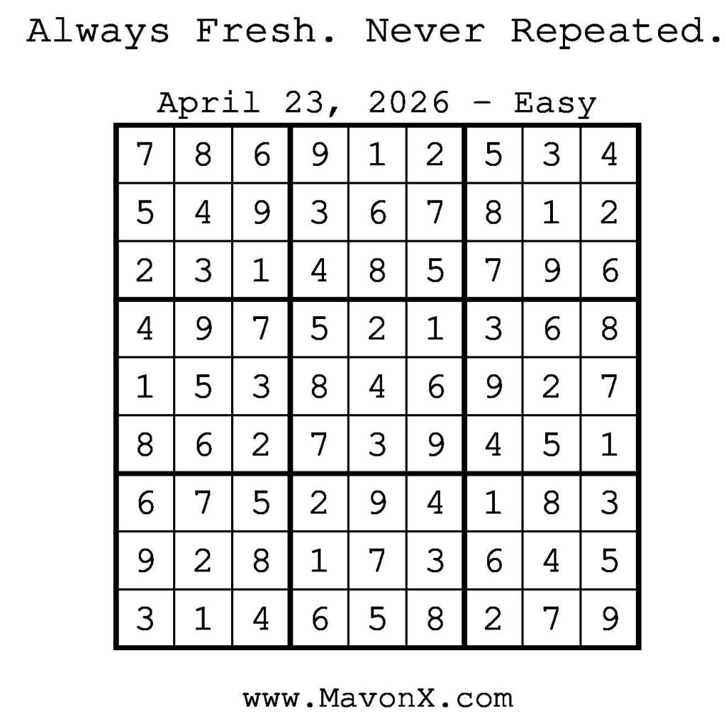 Puzzles of the Day – April 23, 2026 Post author:admin Post published:April 22, 2026 Post category:Free Stuff / Puzzle of the Day / Puzzle of the Day Solutions / Solutions Post comments:0 Comments Check out our books on Amazon! Check out our books on Barnes and Noble! Check out our books on Etsy! Easy Sudoku Coach Link Medium Sudoku Coach Link Hard Sudoku Coach Link Show Solution You Might Also Like Puzzles of the Day – January 7, 2025 January 7, 2025 Puzzle of the Day – August 6, 2024 August 6, 2024 Puzzles of the Day – January 22, 2026 January 21, 2026 Leave a Reply Cancel replyCommentEnter your name or username to comment Enter your email address to comment Enter your website URL (optional) Save my name, email, and website in this browser for the next time I comment.