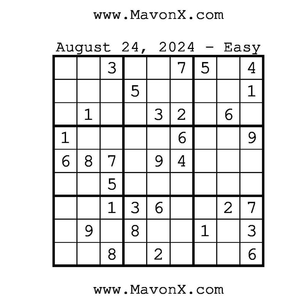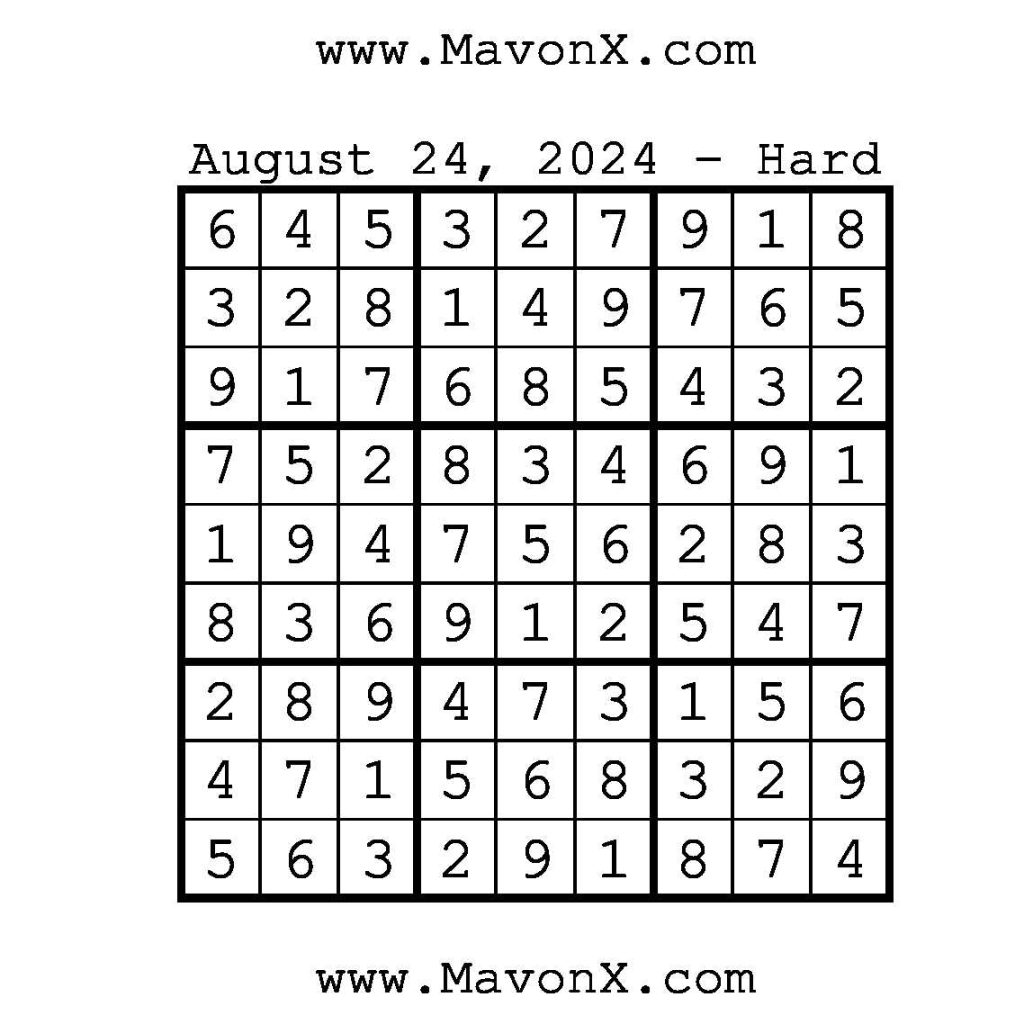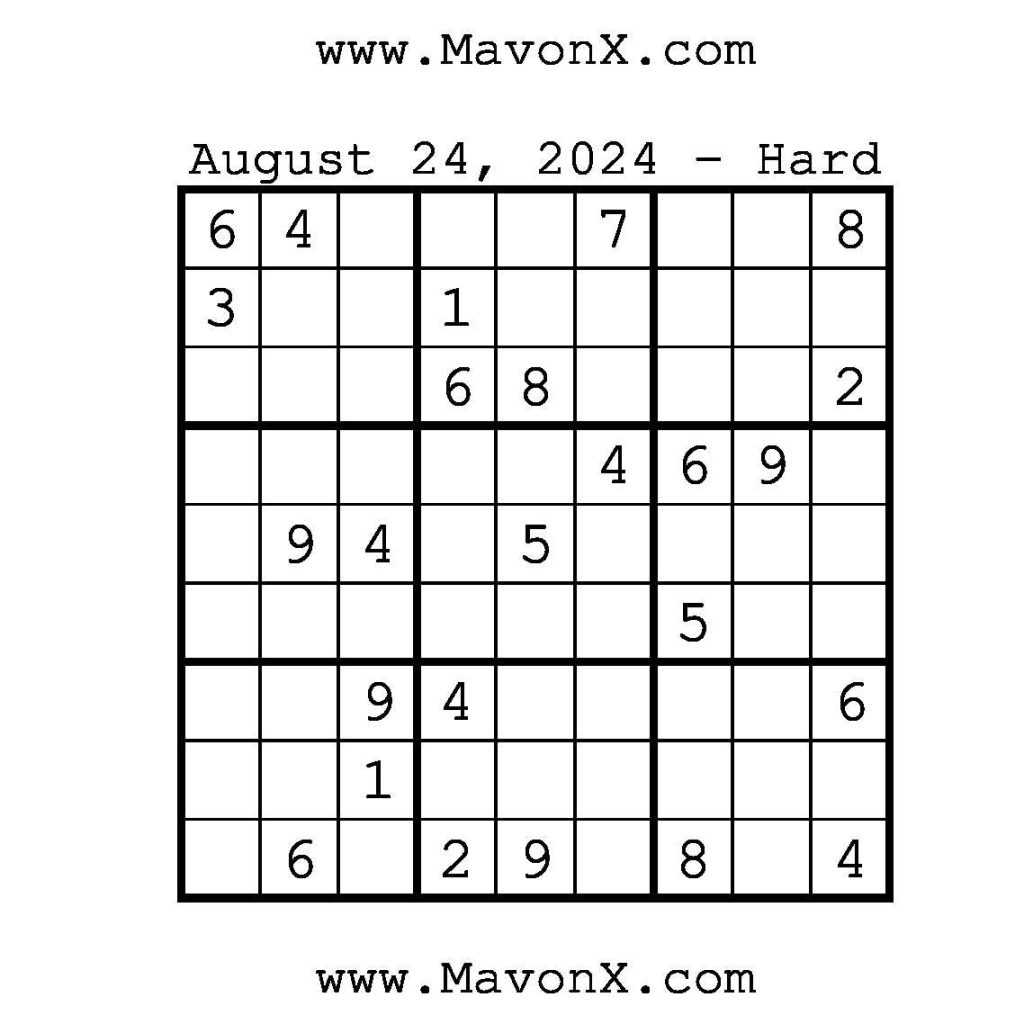 Puzzles of the Day – August 24, 2024 Post author:admin Post published:August 24, 2024 Post category:Free Stuff / Puzzle of the Day / Puzzle of the Day Solutions / Solutions Post comments:0 Comments Check out our books on Amazon!!!!! Easy Sudoku Coach Link Medium Sudoku Coach Link Hard Sudoku Coach Link Show Solution You Might Also Like Puzzles of the Day – October 13, 2024 October 13, 2024 Puzzles of the Day – April 1, 2025 April 2, 2025 Puzzles of the Day – June 14, 2025 June 16, 2025 Leave a Reply Cancel replyCommentEnter your name or username to comment Enter your email address to comment Enter your website URL (optional) Save my name, email, and website in this browser for the next time I comment.
