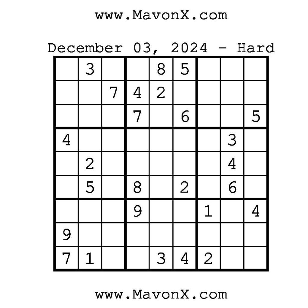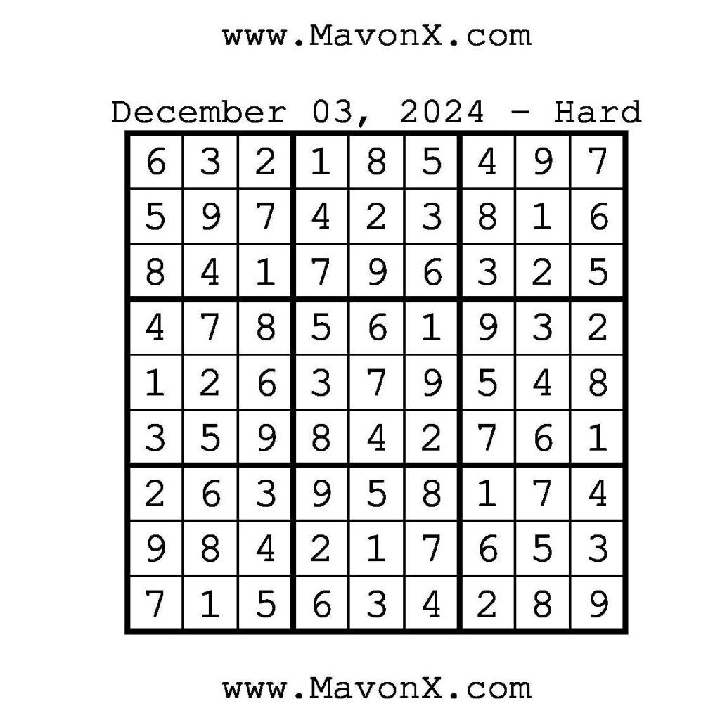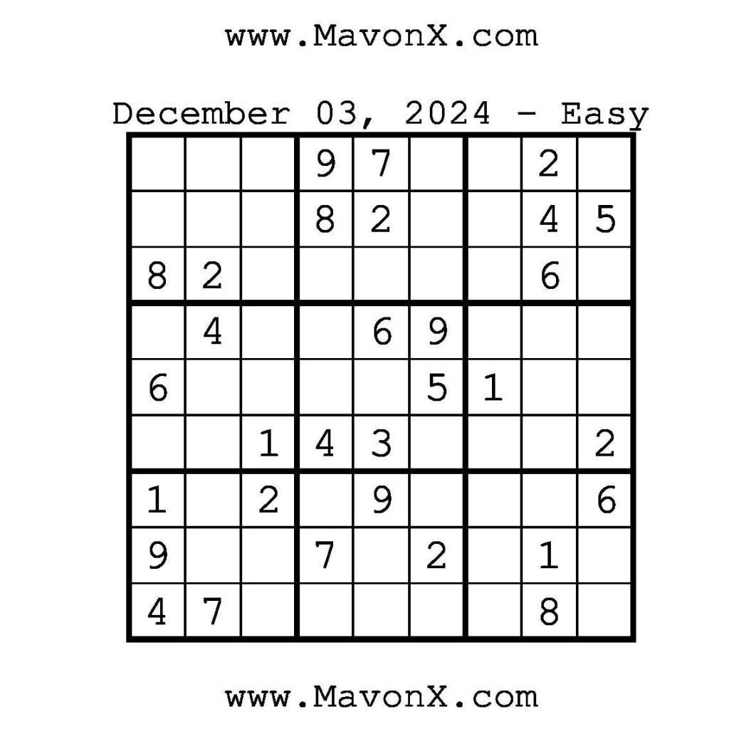 Puzzles of the Day – December 3, 2024 Post author:admin Post published:December 2, 2024 Post category:Free Stuff / Puzzle of the Day / Puzzle of the Day Solutions / Solutions Post comments:0 Comments Check out our books on Amazon!, Check out our books on Barnes and Noble!, Check out our books on Etsy! Easy Sudoku Coach Link Medium Sudoku Coach Link Hard Sudoku Coach Link Show Solution You Might Also Like Puzzles of the Day – August 9, 2025 August 8, 2025 Puzzle of the Day – July 25, 2024 July 26, 2024 Puzzle of the Day – July 11, 2024 July 11, 2024 Leave a Reply Cancel replyCommentEnter your name or username to comment Enter your email address to comment Enter your website URL (optional) Save my name, email, and website in this browser for the next time I comment.