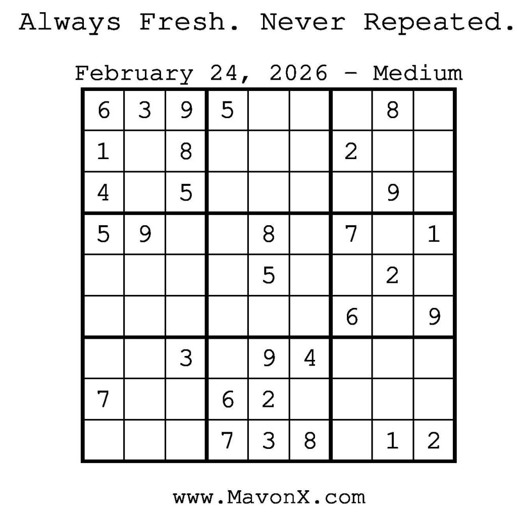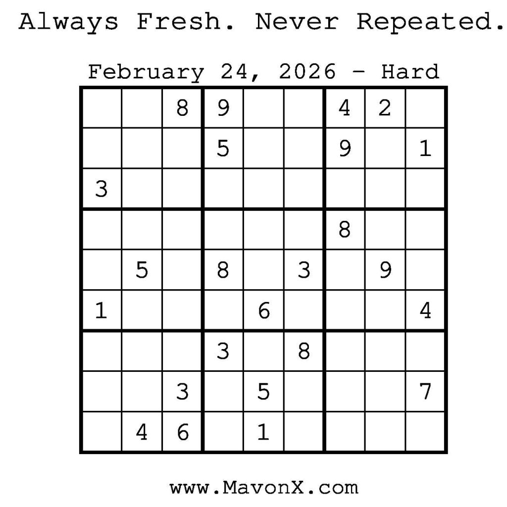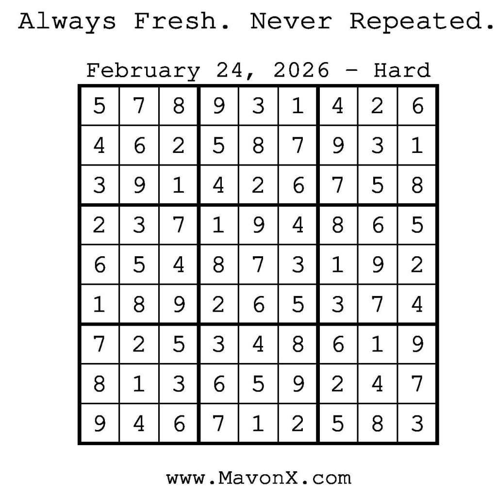 Puzzles of the Day – February 24, 2026 Post author:admin Post published:February 23, 2026 Post category:Free Stuff / Puzzle of the Day / Puzzle of the Day Solutions / Solutions Post comments:0 Comments Check out our books on Amazon! Check out our books on Barnes and Noble! Check out our books on Etsy! Easy Sudoku Coach Link Medium Sudoku Coach Link Hard Sudoku Coach Link Show Solution You Might Also Like Puzzles of the Day – September 4, 2024 September 4, 2024 Puzzles of the Day – March 12, 2025 March 12, 2025 Puzzles of the Day – June 4, 2025 June 3, 2025 Leave a Reply Cancel replyCommentEnter your name or username to comment Enter your email address to comment Enter your website URL (optional) Save my name, email, and website in this browser for the next time I comment.