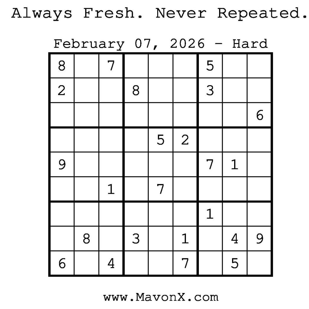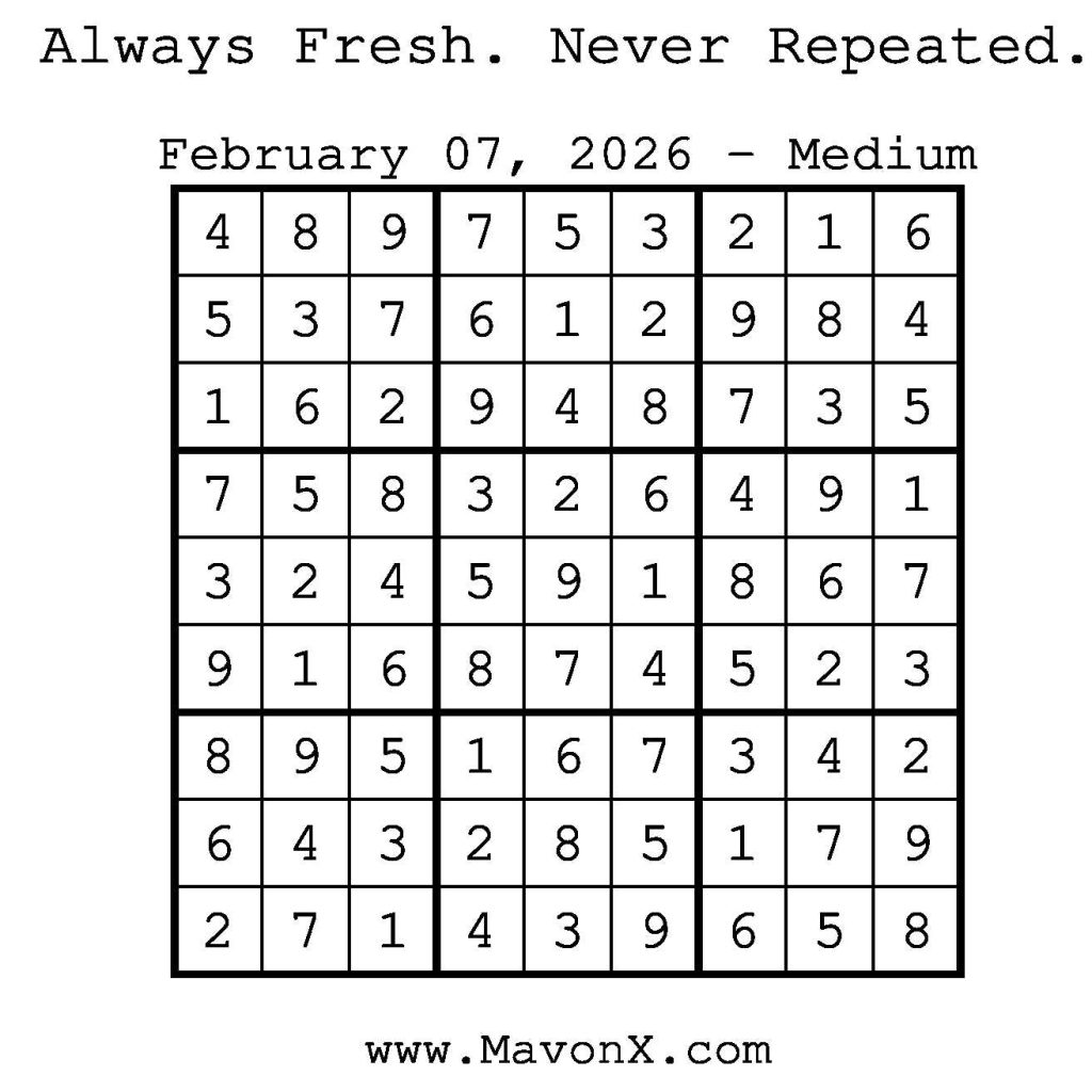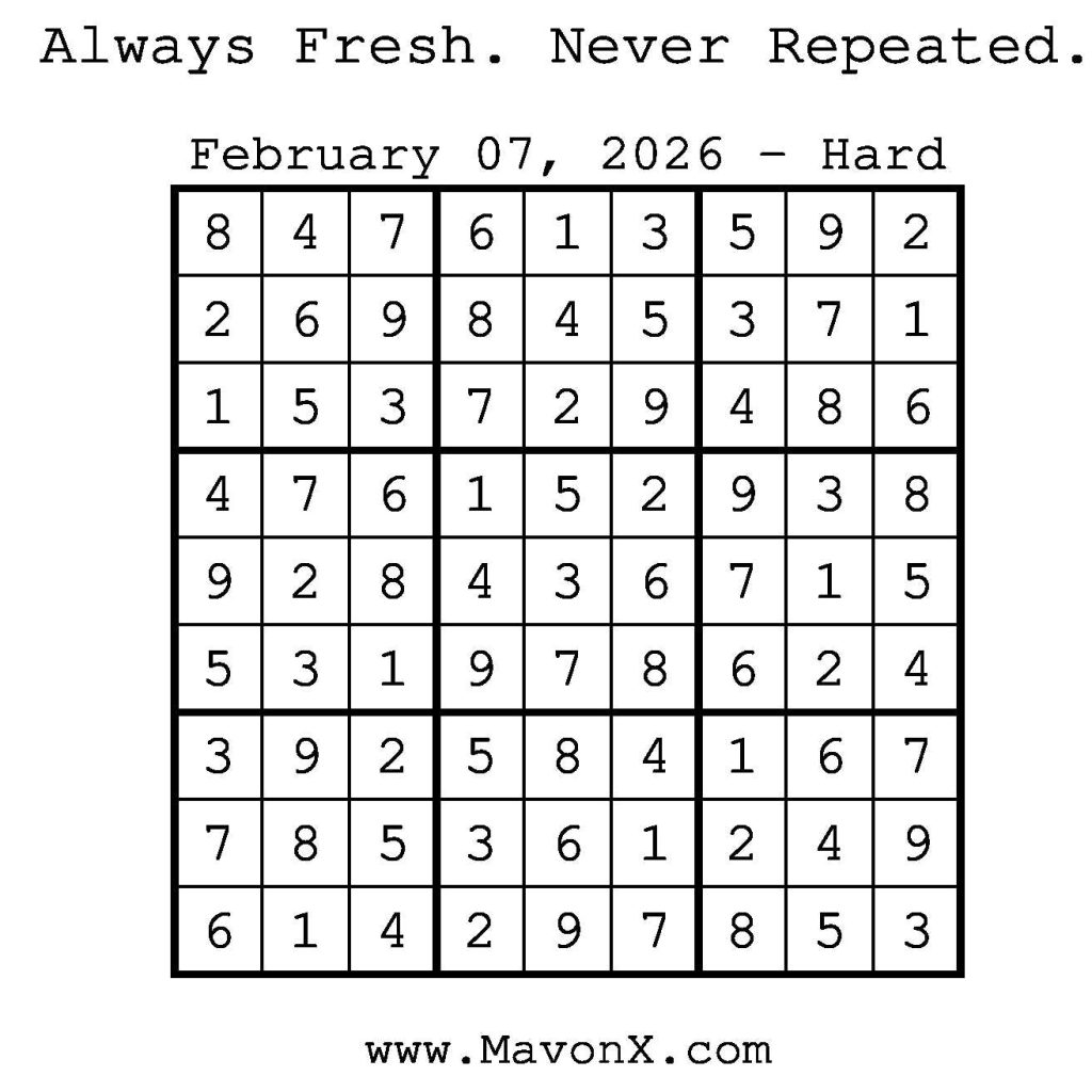 Puzzles of the Day – February 7, 2026 Post author:admin Post published:February 7, 2026 Post category:Free Stuff / Puzzle of the Day / Puzzle of the Day Solutions / Solutions Post comments:0 Comments Check out our books on Amazon! Check out our books on Barnes and Noble! Check out our books on Etsy! Easy Sudoku Coach Link Medium Sudoku Coach Link Hard Sudoku Coach Link Show Solution You Might Also Like Puzzles of the Day – January 17, 2026 January 16, 2026 Puzzles of the Day – January 26, 2026 January 25, 2026 Puzzles of the Day – November 10, 2024 November 9, 2024 Leave a Reply Cancel replyCommentEnter your name or username to comment Enter your email address to comment Enter your website URL (optional) Save my name, email, and website in this browser for the next time I comment.