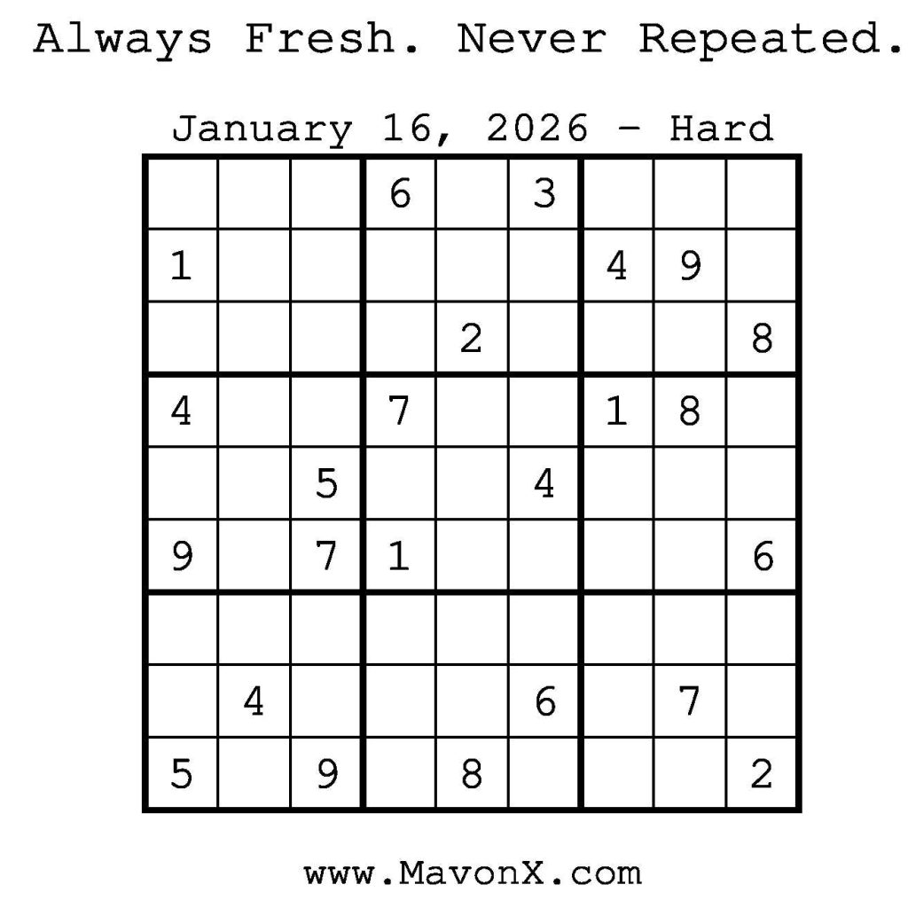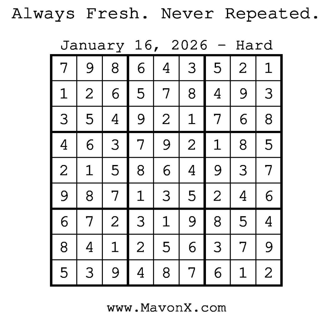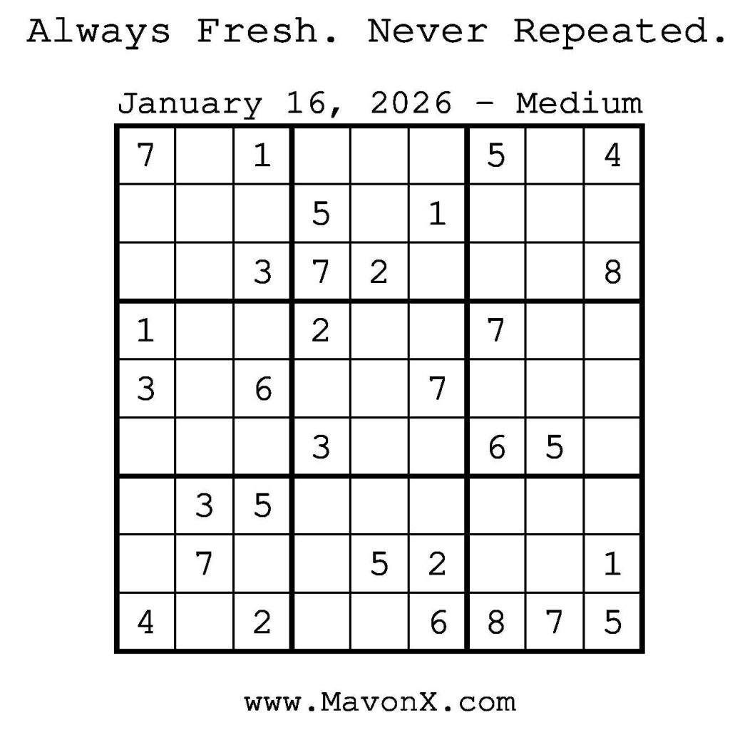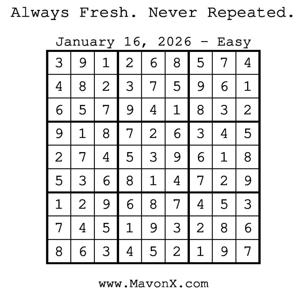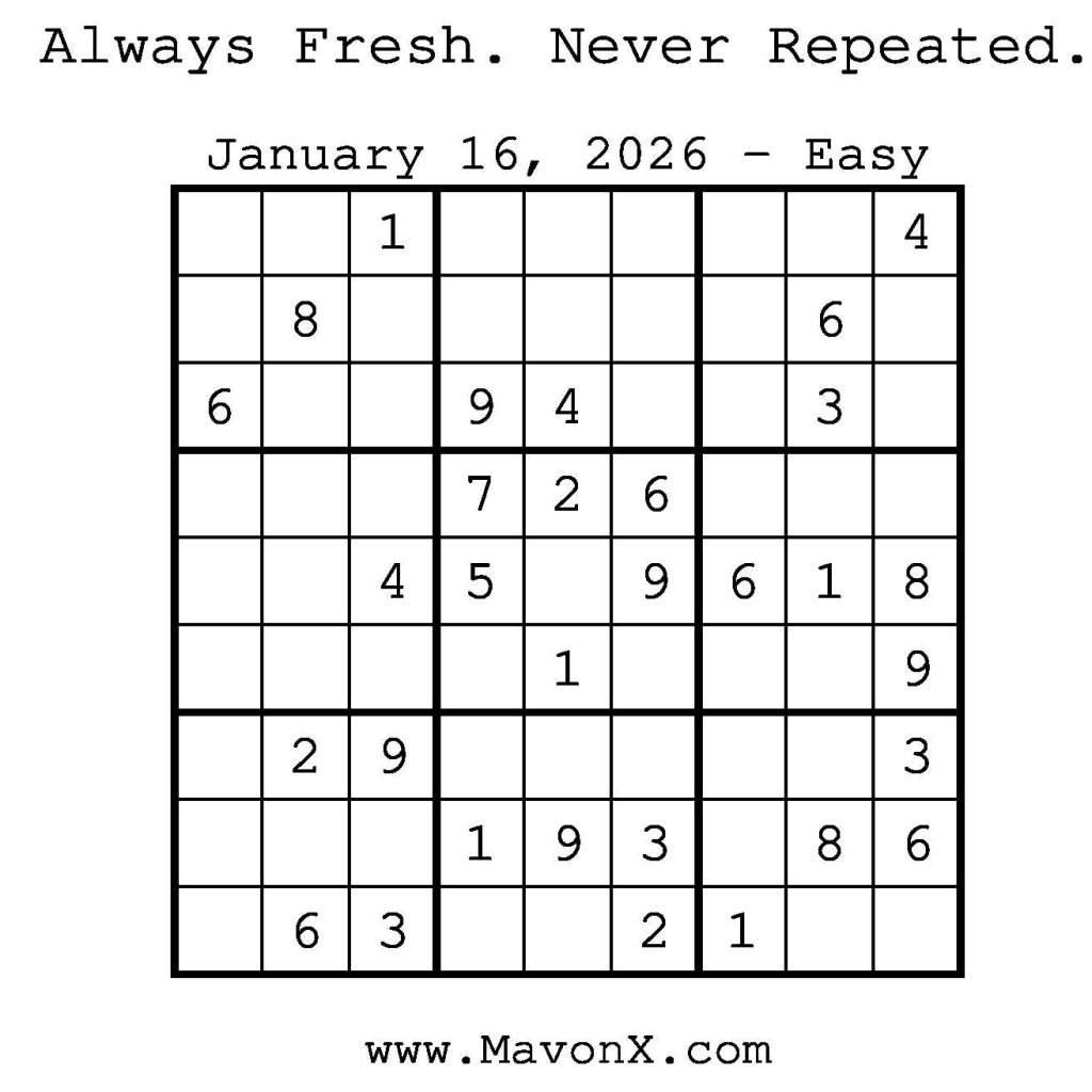 Puzzles of the Day – January 16, 2026 Post author:admin Post published:January 15, 2026 Post category:Free Stuff / Puzzle of the Day / Puzzle of the Day Solutions / Solutions Post comments:0 Comments Check out our books on Amazon! Check out our books on Barnes and Noble! Check out our books on Etsy! Easy Sudoku Coach Link Medium Sudoku Coach Link Hard Sudoku Coach Link Show Solution You Might Also Like Puzzle of the Day – August 10, 2024 August 10, 2024 Puzzles of the Day – April 10, 2026 April 10, 2026 Puzzles of the Day – October 9, 2025 October 8, 2025 Leave a Reply Cancel replyCommentEnter your name or username to comment Enter your email address to comment Enter your website URL (optional) Save my name, email, and website in this browser for the next time I comment.