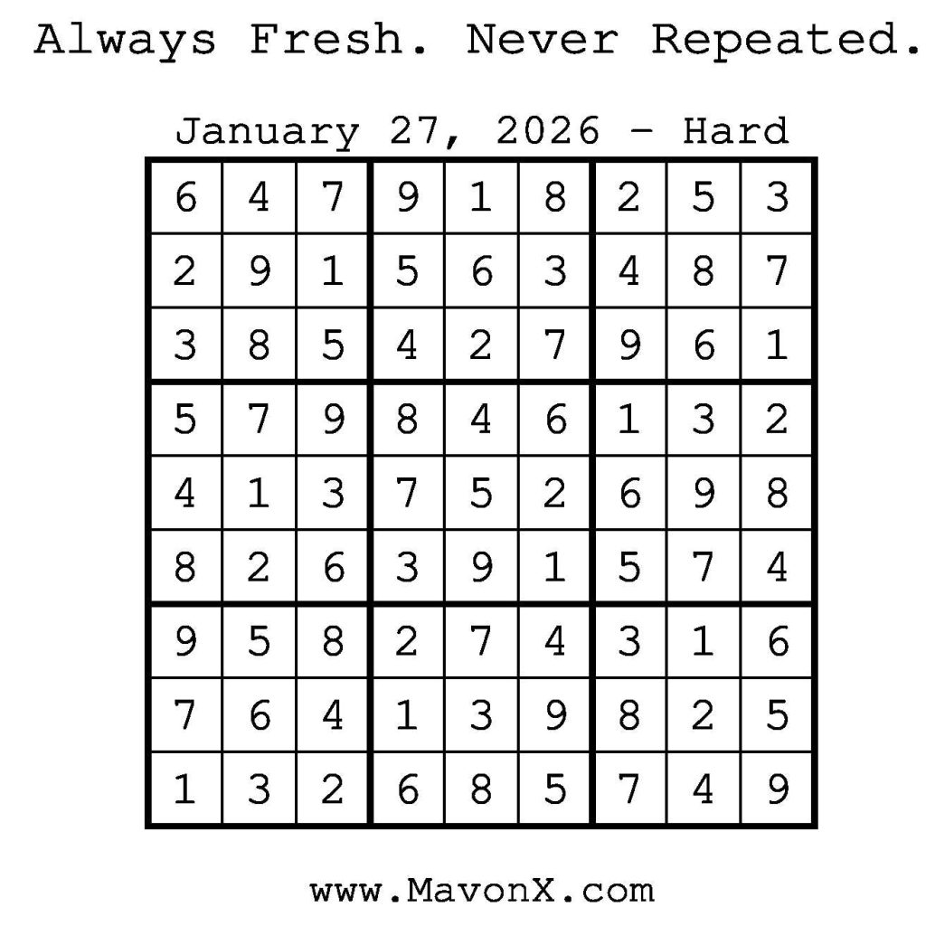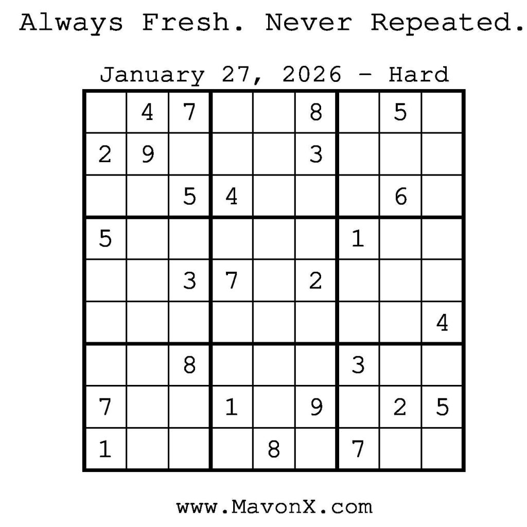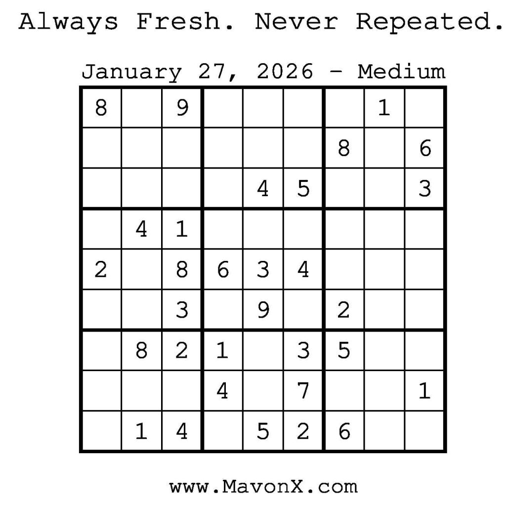 Puzzles of the Day – January 27, 2026 Post author:admin Post published:January 27, 2026 Post category:Free Stuff / Puzzle of the Day / Puzzle of the Day Solutions / Solutions Post comments:0 Comments Check out our books on Amazon! Check out our books on Barnes and Noble! Check out our books on Etsy! Easy Sudoku Coach Link Medium Sudoku Coach Link Hard Sudoku Coach Link Show Solution You Might Also Like Puzzles of the Day – June 30, 2025 July 1, 2025 Puzzles of the Day – May 24, 2025 May 24, 2025 Puzzles of the Day – January 23, 2026 January 22, 2026 Leave a Reply Cancel replyCommentEnter your name or username to comment Enter your email address to comment Enter your website URL (optional) Save my name, email, and website in this browser for the next time I comment.