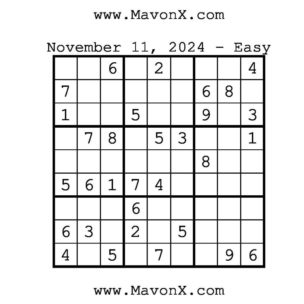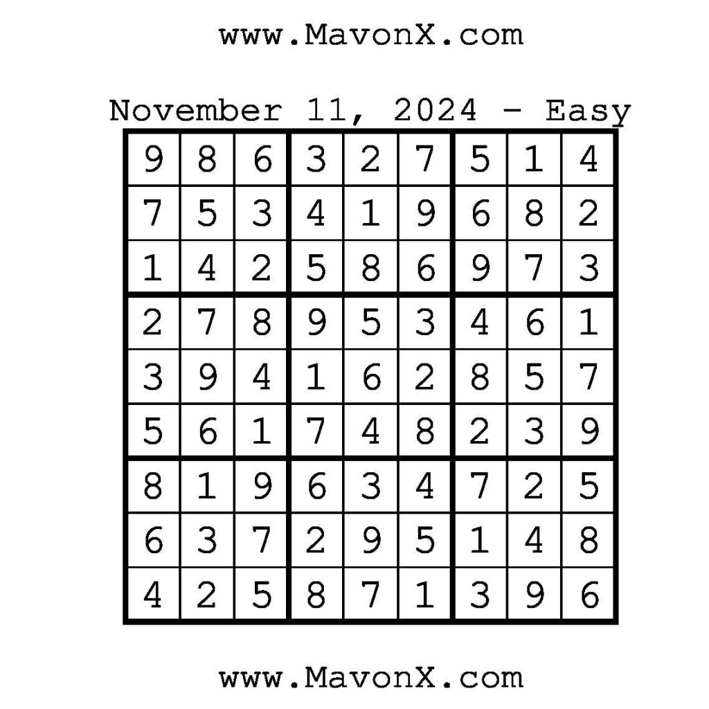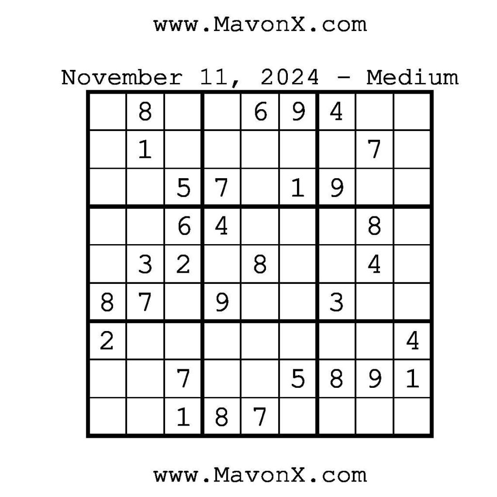 Puzzles of the Day – November 11, 2024 Post author:admin Post published:November 10, 2024 Post category:Free Stuff / Puzzle of the Day / Puzzle of the Day Solutions / Solutions Post comments:0 Comments Check out our books on Amazon!, Check out our books on Barnes and Noble!, Check out our books on Etsy! Easy Sudoku Coach Link Medium Sudoku Coach Link Hard Sudoku Coach Link Show Solution You Might Also Like Puzzles of the Day – March 14, 2025 March 14, 2025 Puzzles of the Day – December 11, 2024 December 10, 2024 Puzzles of the Day – December 28, 2024 December 28, 2024 Leave a Reply Cancel replyCommentEnter your name or username to comment Enter your email address to comment Enter your website URL (optional) Save my name, email, and website in this browser for the next time I comment.