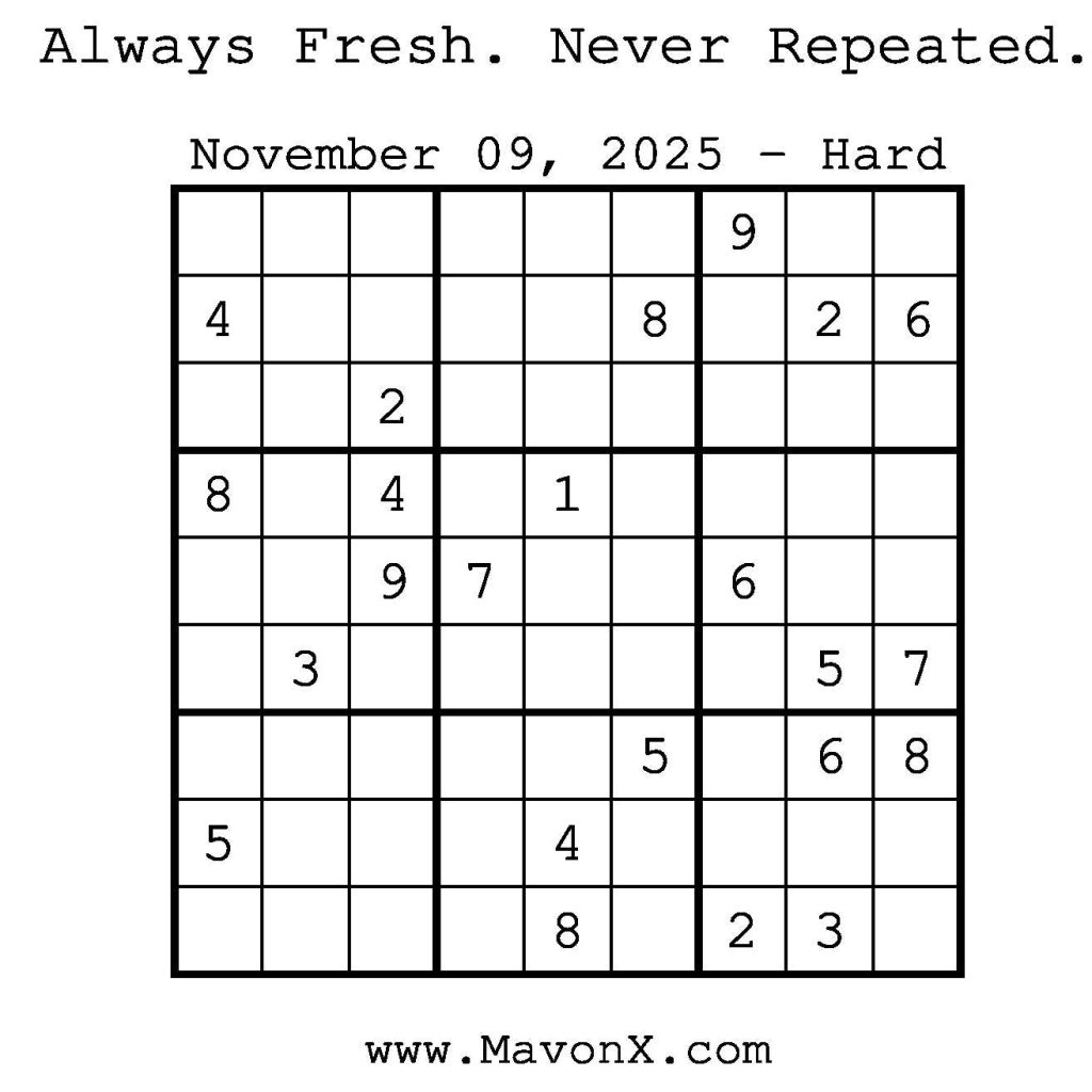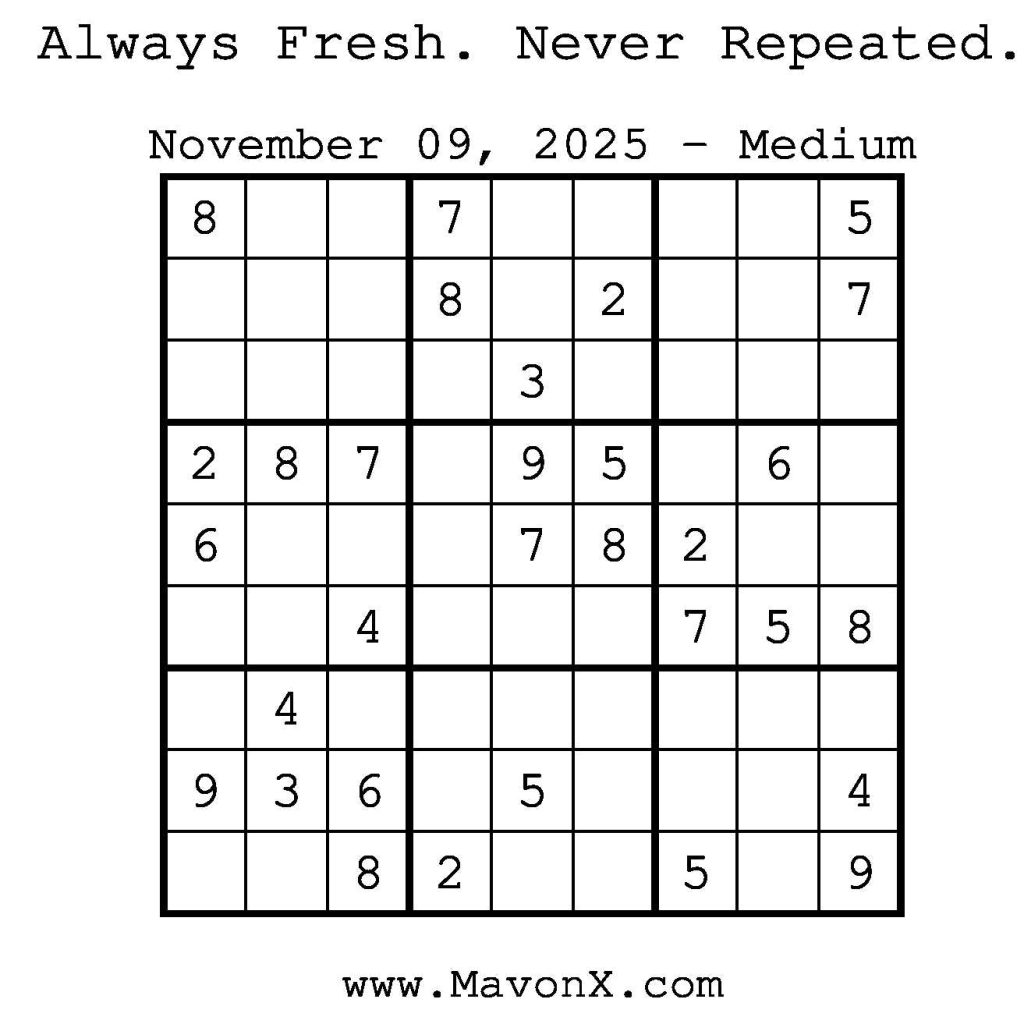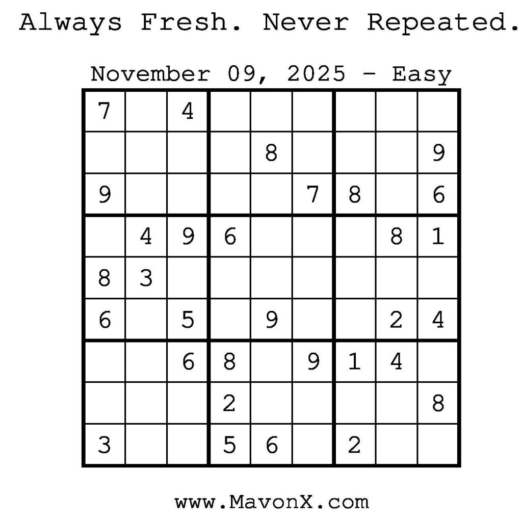 Puzzles of the Day – November 9, 2025 Post author:admin Post published:November 8, 2025 Post category:Free Stuff / Puzzle of the Day / Puzzle of the Day Solutions / Solutions Post comments:0 Comments Check out our books on Amazon! Check out our books on Barnes and Noble! Check out our books on Etsy! Easy Sudoku Coach Link Medium Sudoku Coach Link Hard Sudoku Coach Link Show Solution You Might Also Like Puzzles of the Day – April 8, 2025 April 7, 2025 Puzzles of the Day – September 13, 2024 September 13, 2024 Puzzles of the Day – March 29, 2026 March 29, 2026 Leave a Reply Cancel replyCommentEnter your name or username to comment Enter your email address to comment Enter your website URL (optional) Save my name, email, and website in this browser for the next time I comment.