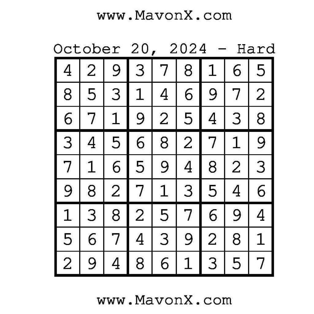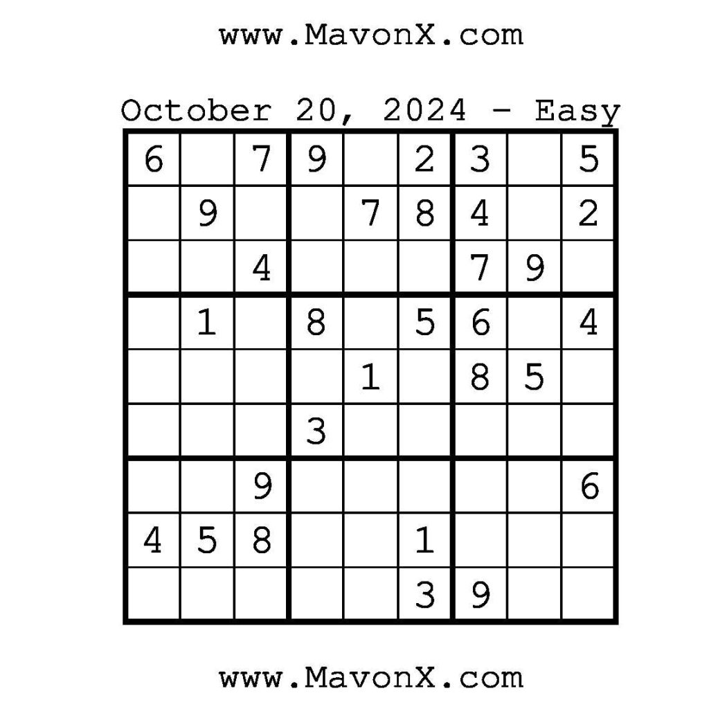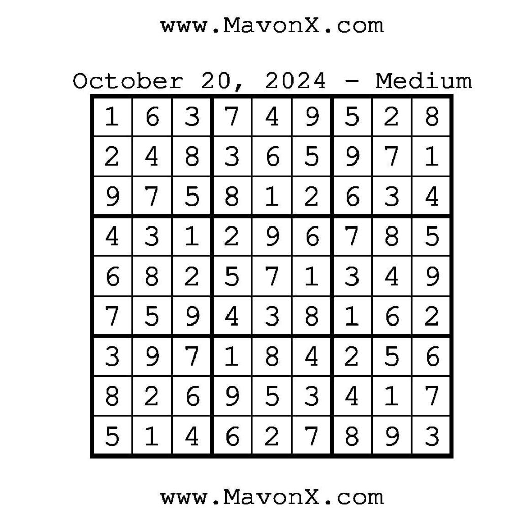 Puzzles of the Day – October 20, 2024 Post author:admin Post published:October 19, 2024 Post category:Free Stuff / Puzzle of the Day / Puzzle of the Day Solutions / Solutions Post comments:0 Comments Check out our books on Amazon!, Check out our books on Barnes and Noble!, Check out our books on Etsy! Easy Sudoku Coach Link Medium Sudoku Coach Link Hard Sudoku Coach Link Show Solution You Might Also Like Puzzles of the Day – January 4, 2025 January 4, 2025 Puzzles of the Day – January 11, 2026 January 10, 2026 Puzzles of the Day – January 16, 2026 January 15, 2026 Leave a Reply Cancel replyCommentEnter your name or username to comment Enter your email address to comment Enter your website URL (optional) Save my name, email, and website in this browser for the next time I comment.