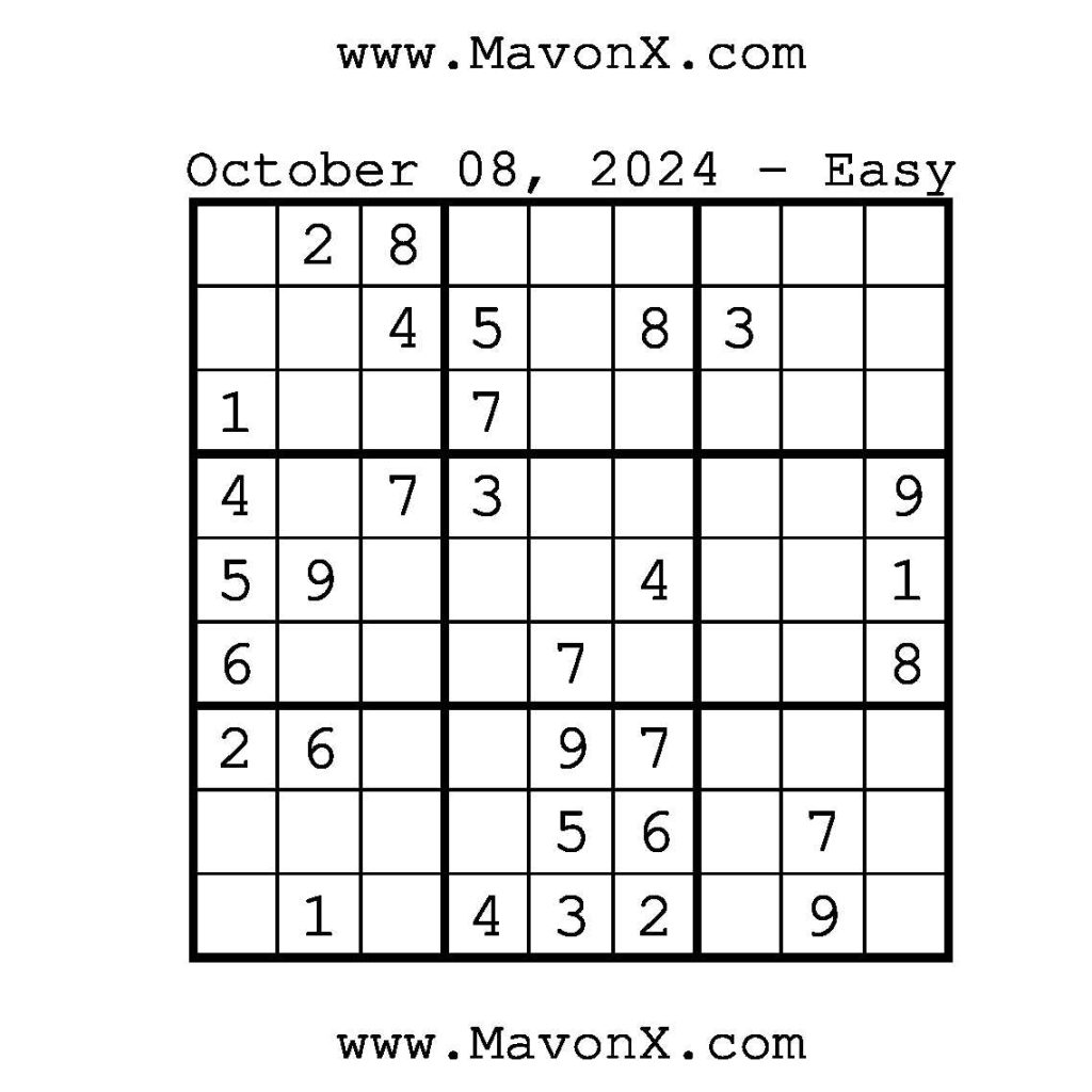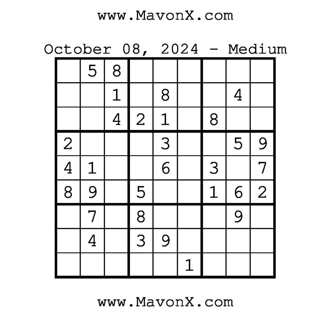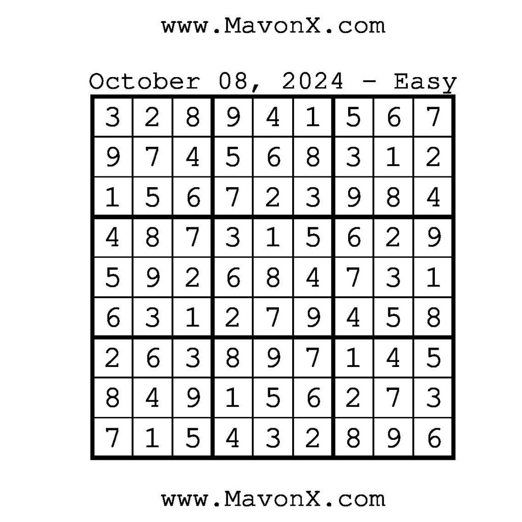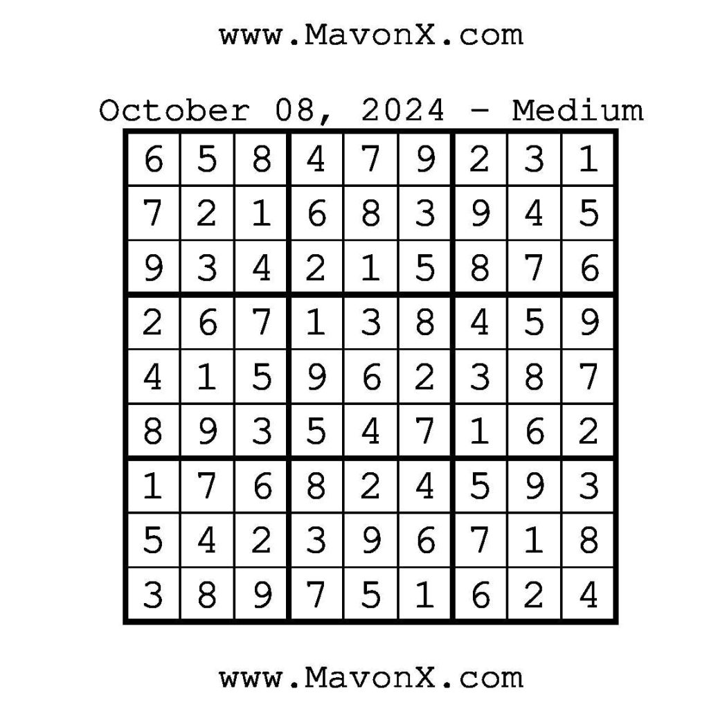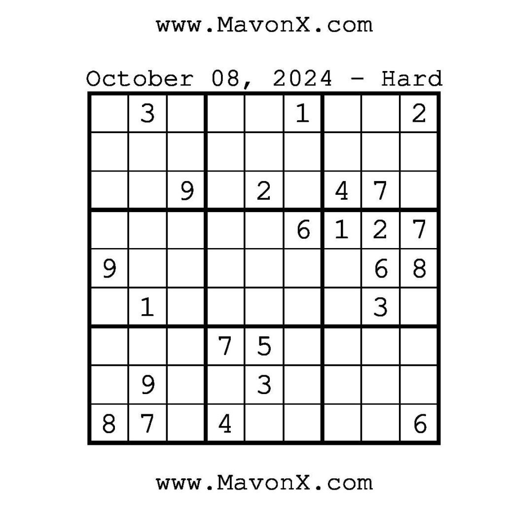 Puzzles of the Day – October 8, 2024 Post author:admin Post published:October 8, 2024 Post category:Free Stuff / Puzzle of the Day / Puzzle of the Day Solutions / Solutions Post comments:0 Comments Check out our books on Amazon!!!!! Easy Sudoku Coach Link Medium Sudoku Coach Link Hard Sudoku Coach Link Show Solution You Might Also Like Puzzles of the Day – August 30, 2024 August 30, 2024 Puzzles of the Day – March 24, 2026 March 23, 2026 Puzzles of the Day – February 14, 2026 February 14, 2026 Leave a Reply Cancel replyCommentEnter your name or username to comment Enter your email address to comment Enter your website URL (optional) Save my name, email, and website in this browser for the next time I comment.