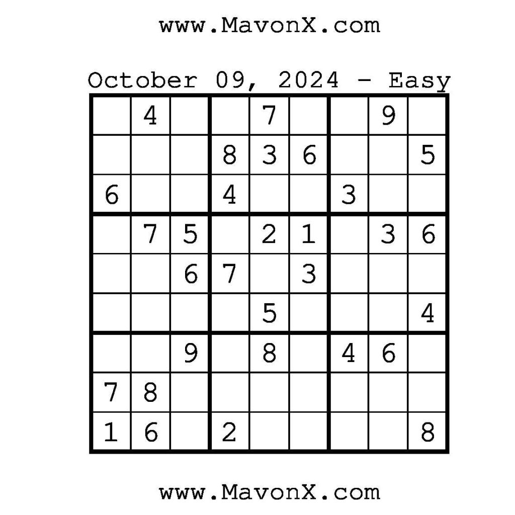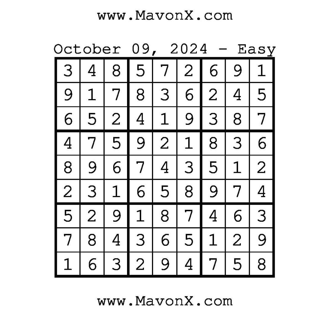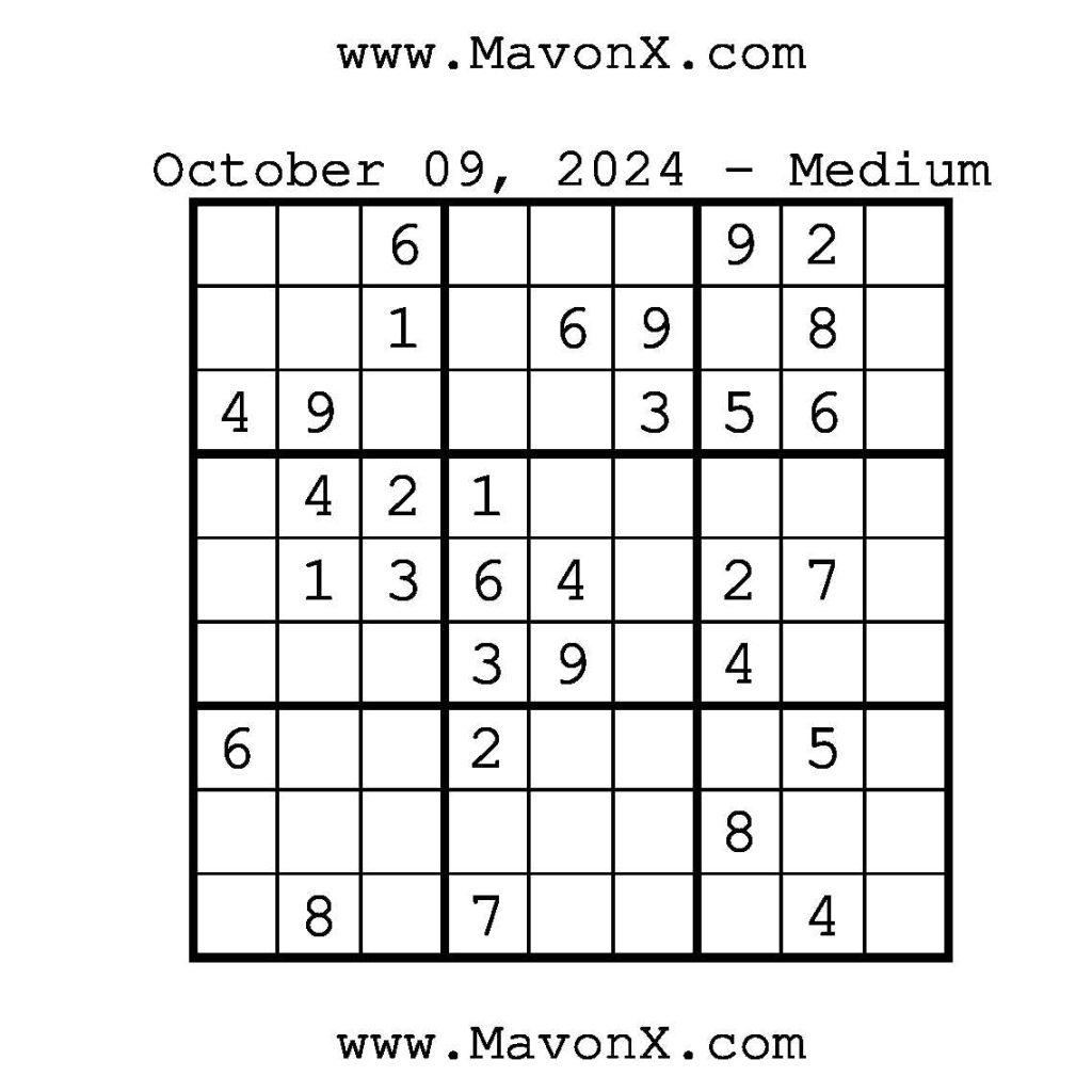 Puzzles of the Day – October 9, 2024 Post author:admin Post published:October 9, 2024 Post category:Free Stuff / Puzzle of the Day / Puzzle of the Day Solutions / Solutions Post comments:0 Comments Check out our books on Amazon!!!!! Easy Sudoku Coach Link Medium Sudoku Coach Link Hard Sudoku Coach Link Show Solution You Might Also Like Puzzles of the Day – December 3, 2024 December 2, 2024 Puzzles of the Day – August 15, 2025 August 15, 2025 Puzzles of the Day – November 28, 2025 November 28, 2025 Leave a Reply Cancel replyCommentEnter your name or username to comment Enter your email address to comment Enter your website URL (optional) Save my name, email, and website in this browser for the next time I comment.