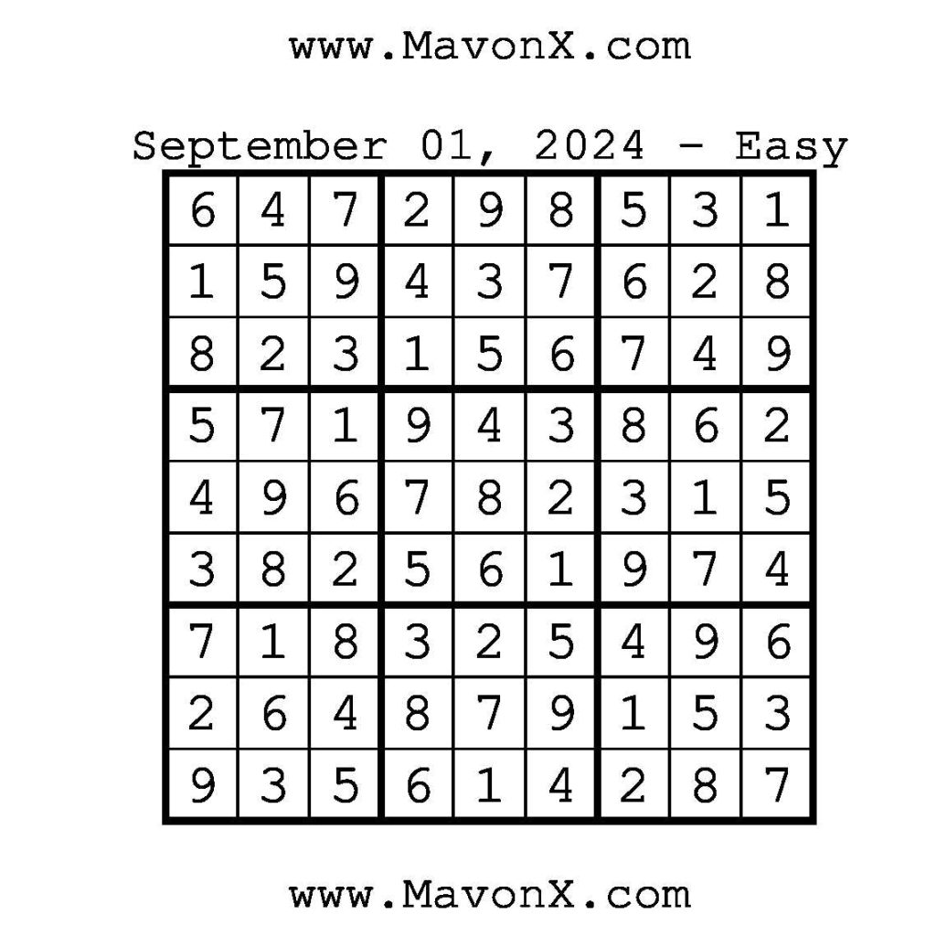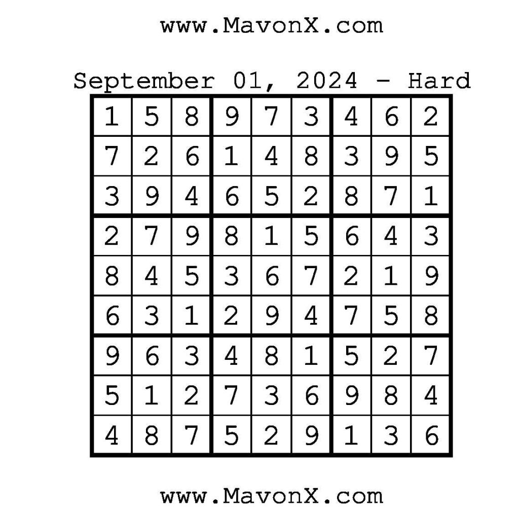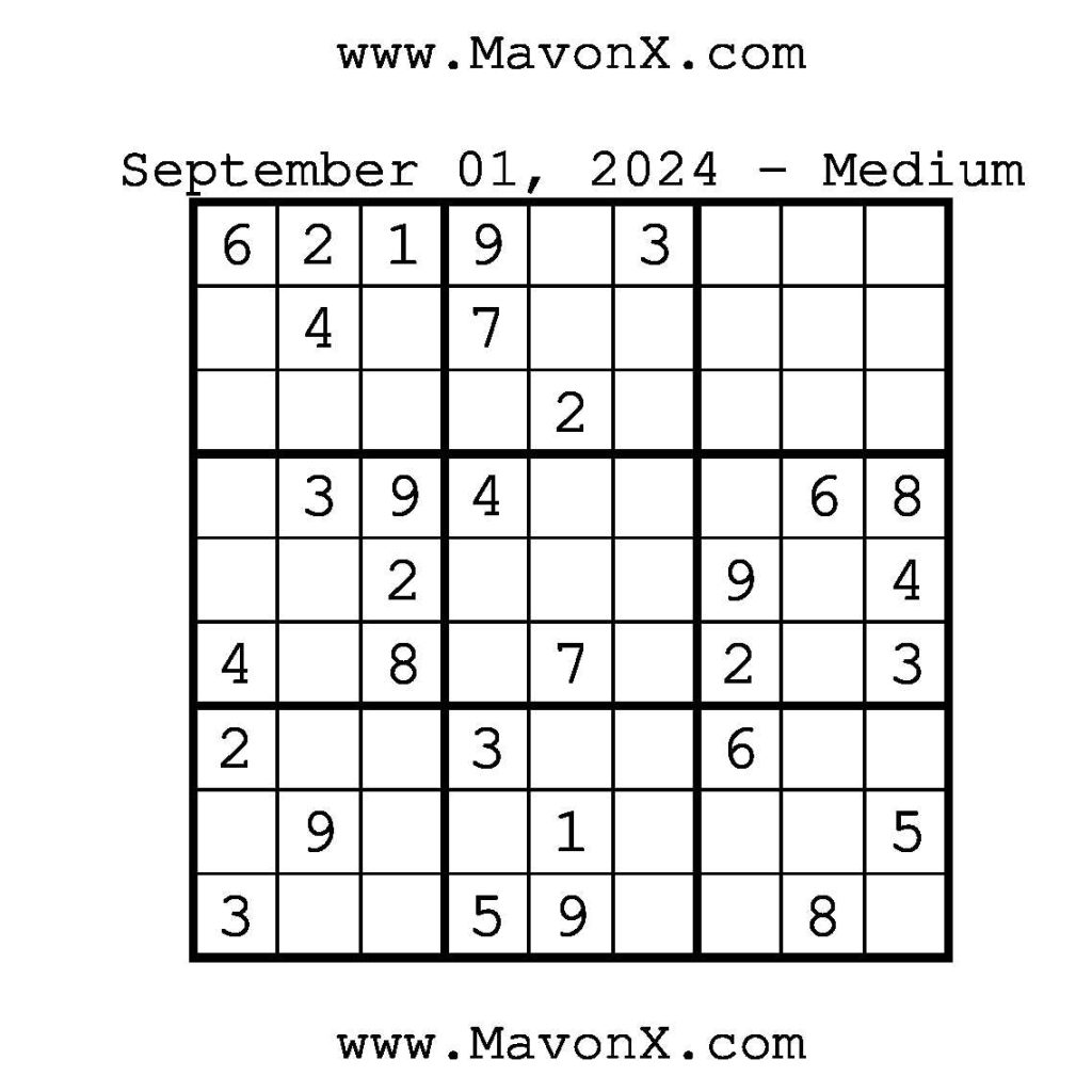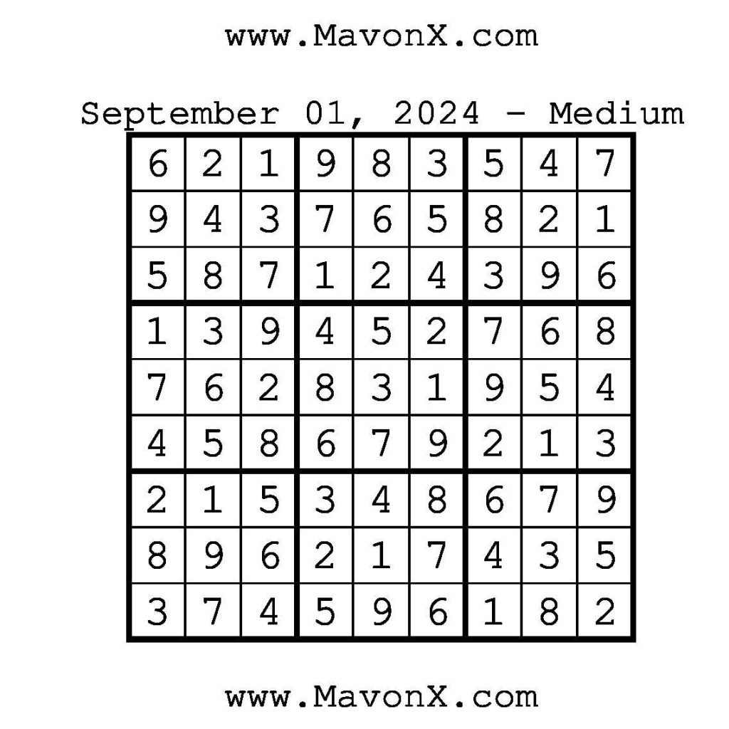Puzzles of the Day – September 1, 2024 Post author:admin Post published:September 1, 2024 Post category:Free Stuff / Puzzle of the Day / Puzzle of the Day Solutions / Solutions Post comments:0 Comments Check out our books on Amazon!!!!! Easy Sudoku Coach Link Medium Sudoku Coach Link Hard Sudoku Coach Link Show Solution You Might Also Like Puzzles of the Day – November 26, 2025 November 26, 2025 Puzzles of the Day – October 28, 2025 October 28, 2025 Puzzles of the Day – April 13, 2025 April 12, 2025 Leave a Reply Cancel replyCommentEnter your name or username to comment Enter your email address to comment Enter your website URL (optional) Save my name, email, and website in this browser for the next time I comment.