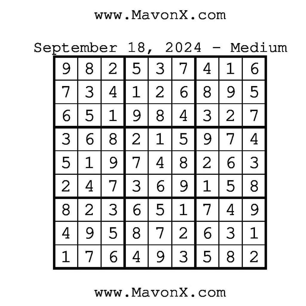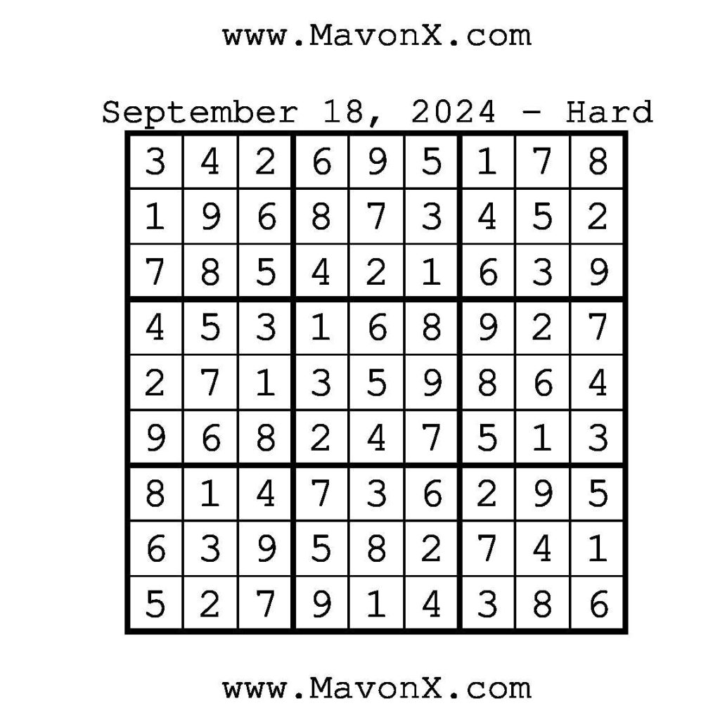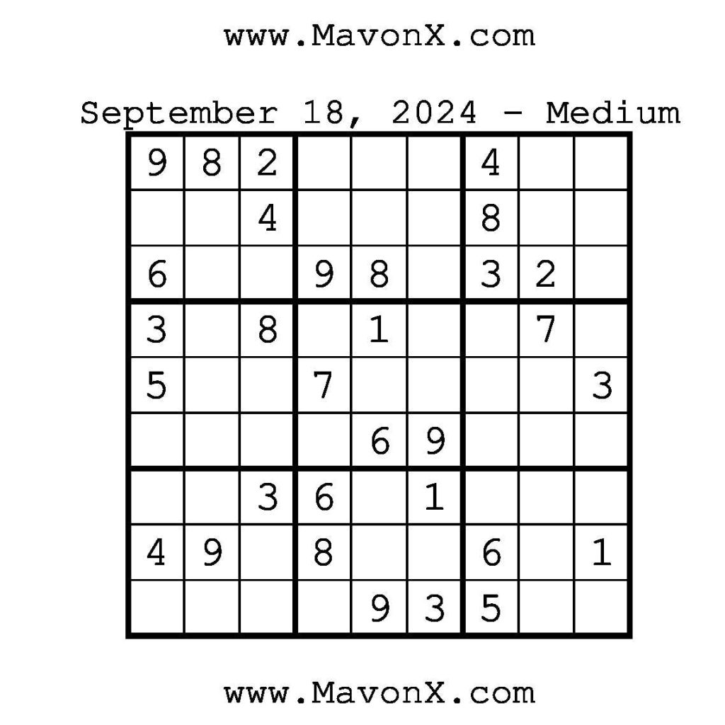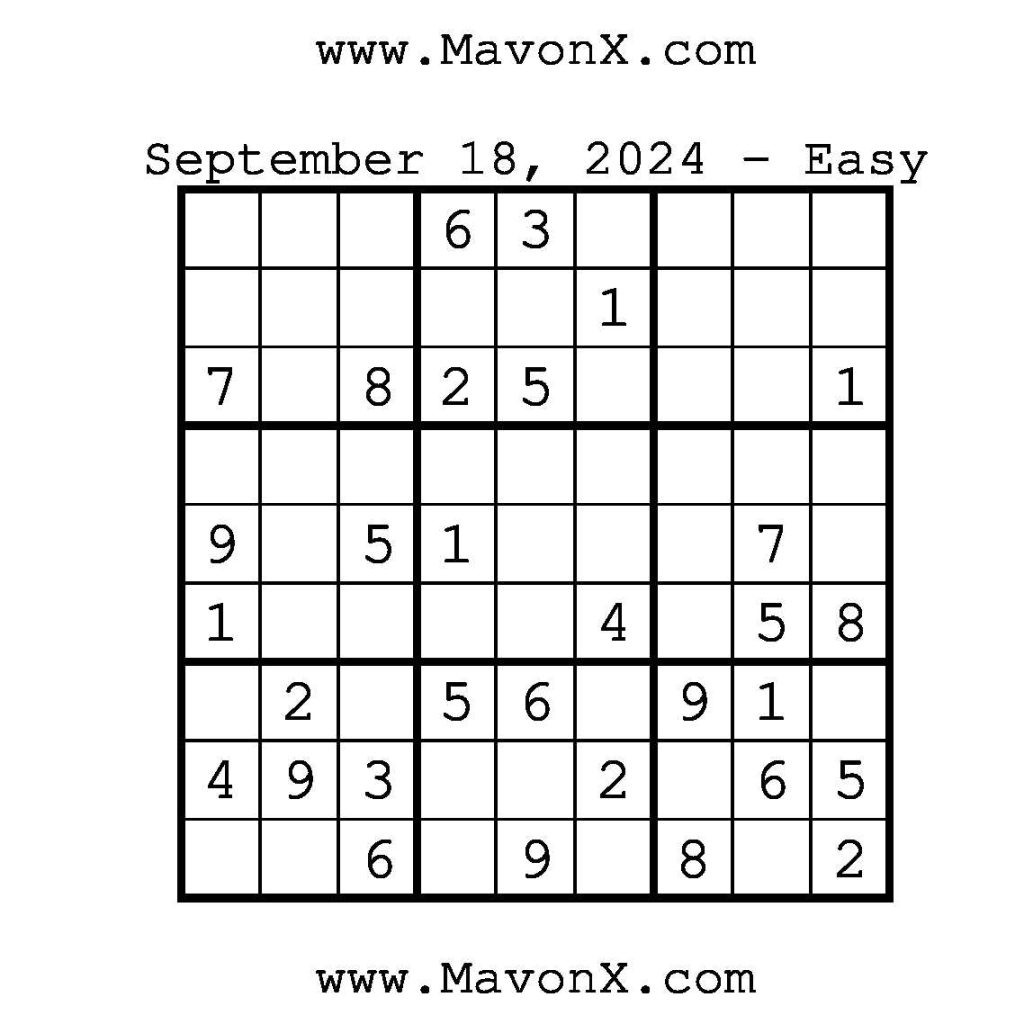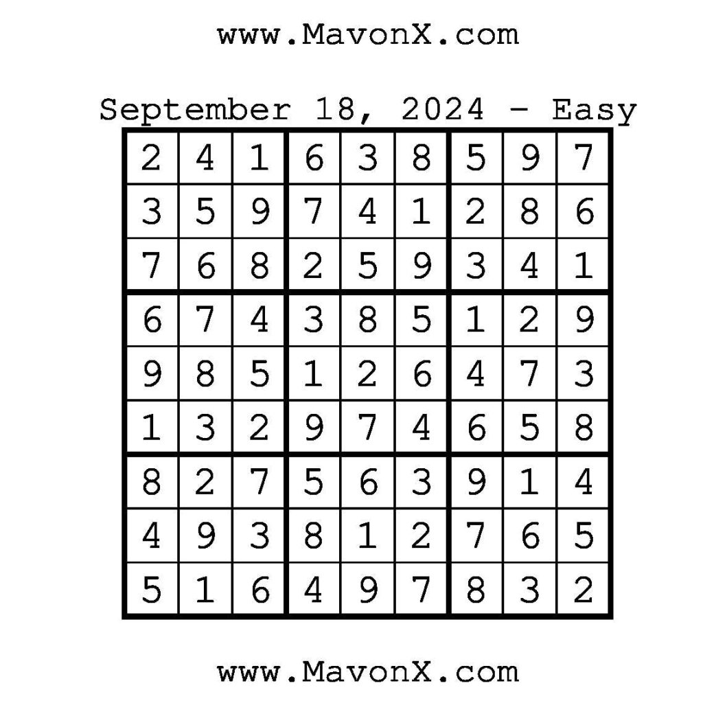 Puzzles of the Day – September 18, 2024 Post author:admin Post published:September 18, 2024 Post category:Free Stuff / Puzzle of the Day / Puzzle of the Day Solutions / Solutions Post comments:0 Comments Check out our books on Amazon!!!!! Easy Sudoku Coach Link Medium Sudoku Coach Link Hard Sudoku Coach Link Show Solution You Might Also Like Puzzles of the Day – September 29, 2024 September 29, 2024 Puzzles of the Day – December 28, 2025 December 27, 2025 Puzzles of the Day – March 31, 2026 March 29, 2026 Leave a Reply Cancel replyCommentEnter your name or username to comment Enter your email address to comment Enter your website URL (optional) Save my name, email, and website in this browser for the next time I comment.