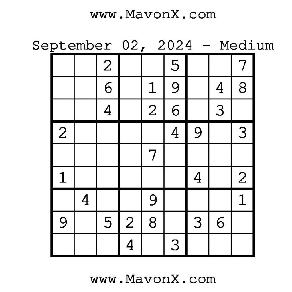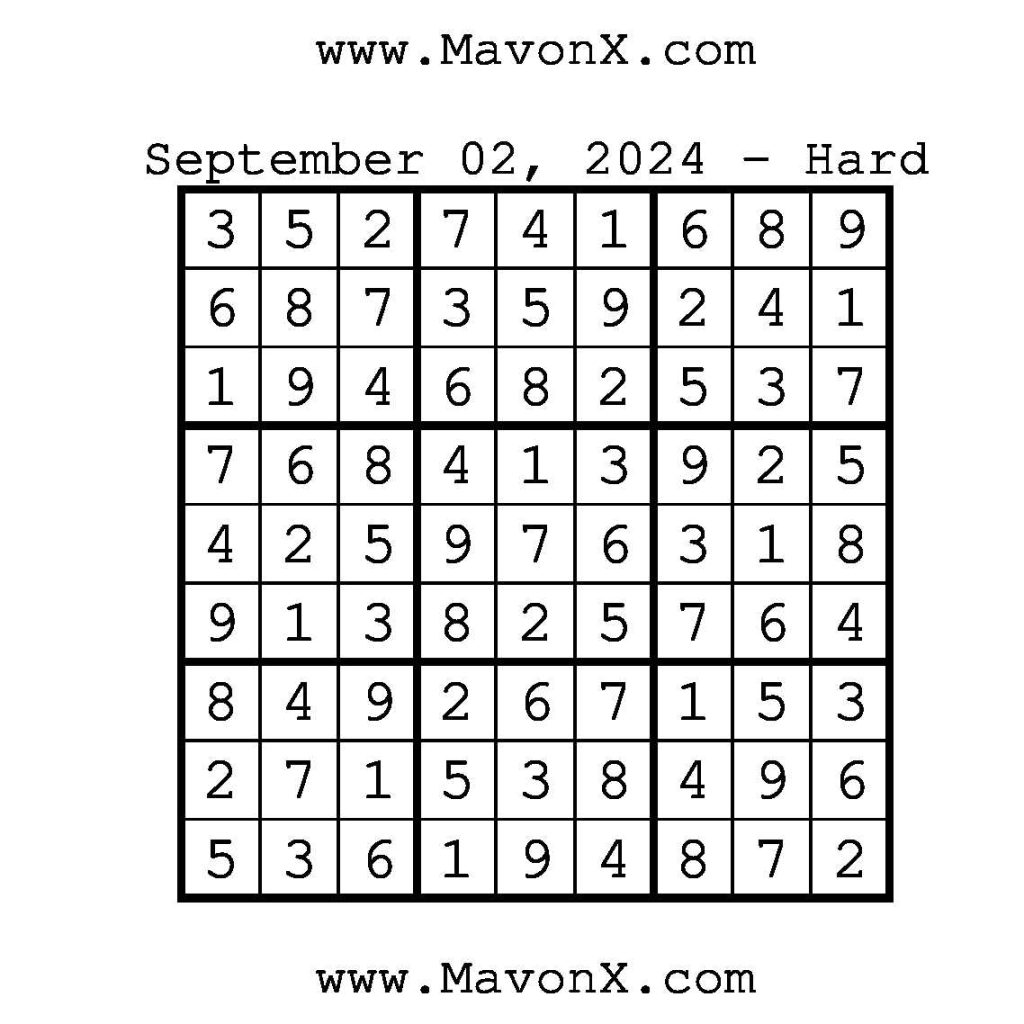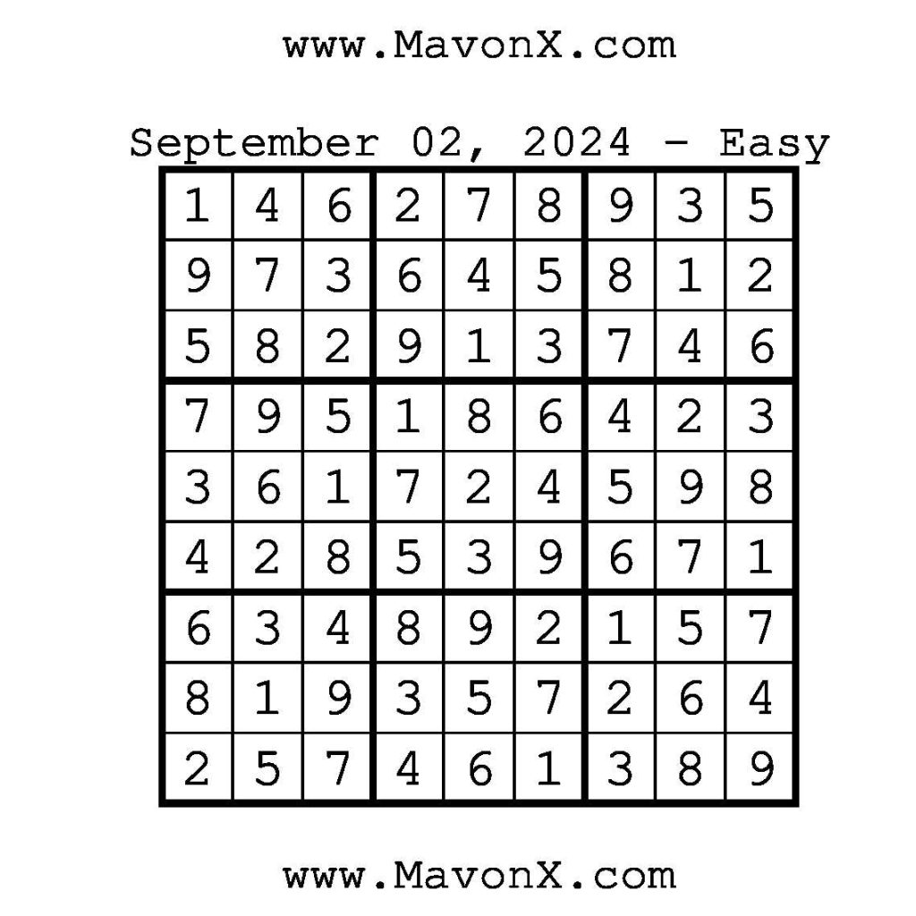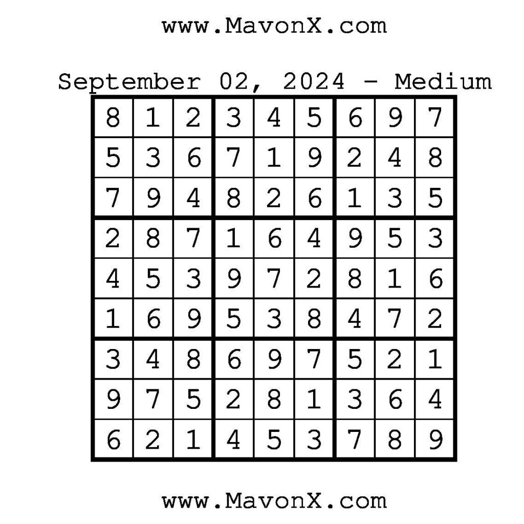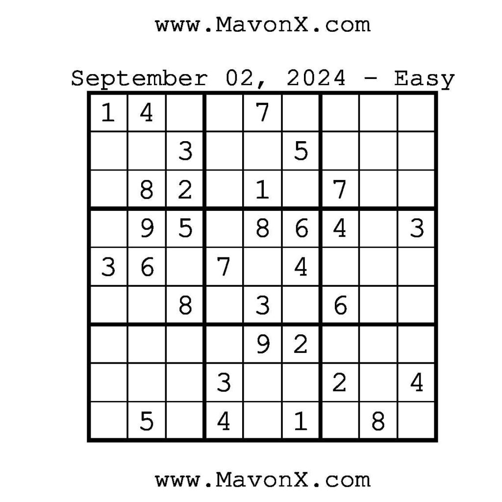 Puzzles of the Day – September 2, 2024 Post author:admin Post published:September 2, 2024 Post category:Free Stuff / Puzzle of the Day / Puzzle of the Day Solutions / Solutions Post comments:0 Comments Check out our books on Amazon!!!!! Easy Sudoku Coach Link Medium Sudoku Coach Link Hard Sudoku Coach Link Show Solution You Might Also Like Puzzles of the Day – February 8, 2025 February 7, 2025 Puzzles of the Day – September 3, 2025 September 2, 2025 Puzzles of the Day – September 5, 2024 September 5, 2024 Leave a Reply Cancel replyCommentEnter your name or username to comment Enter your email address to comment Enter your website URL (optional) Save my name, email, and website in this browser for the next time I comment.
