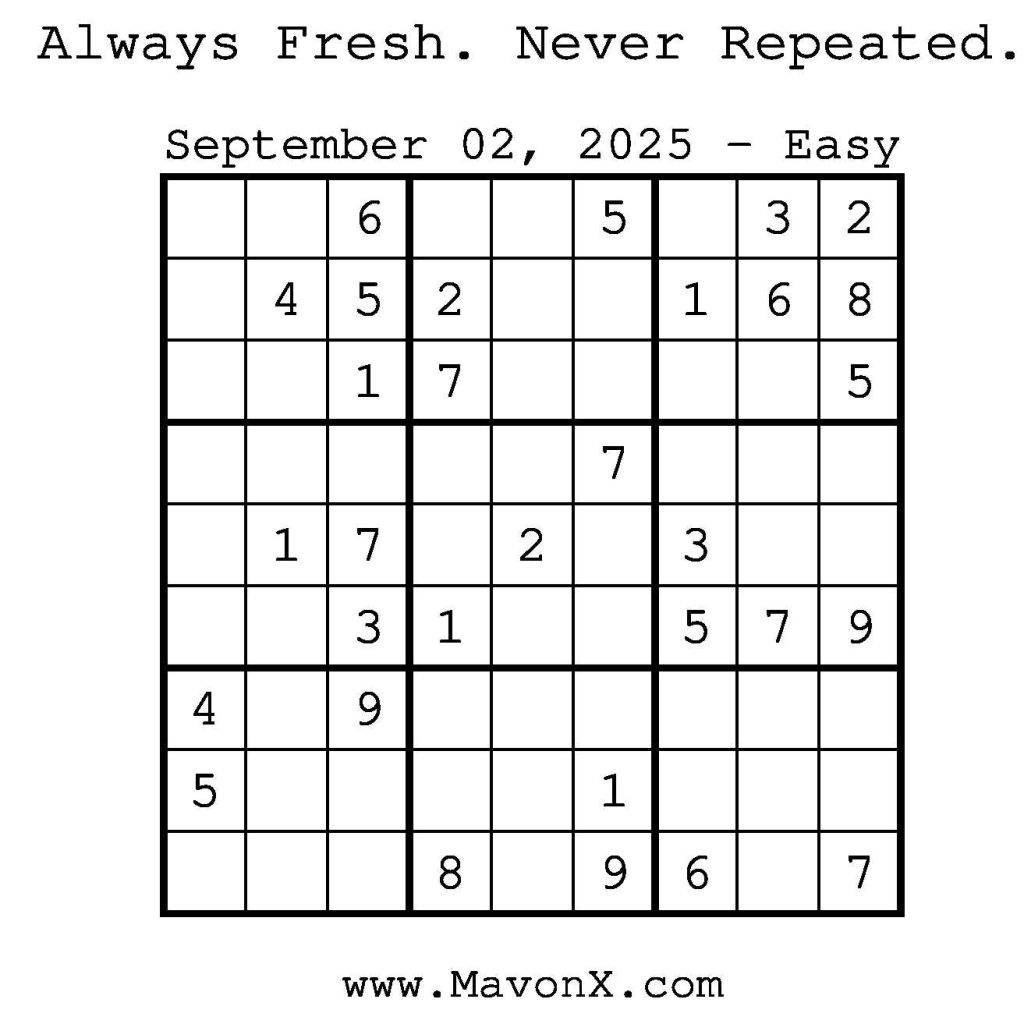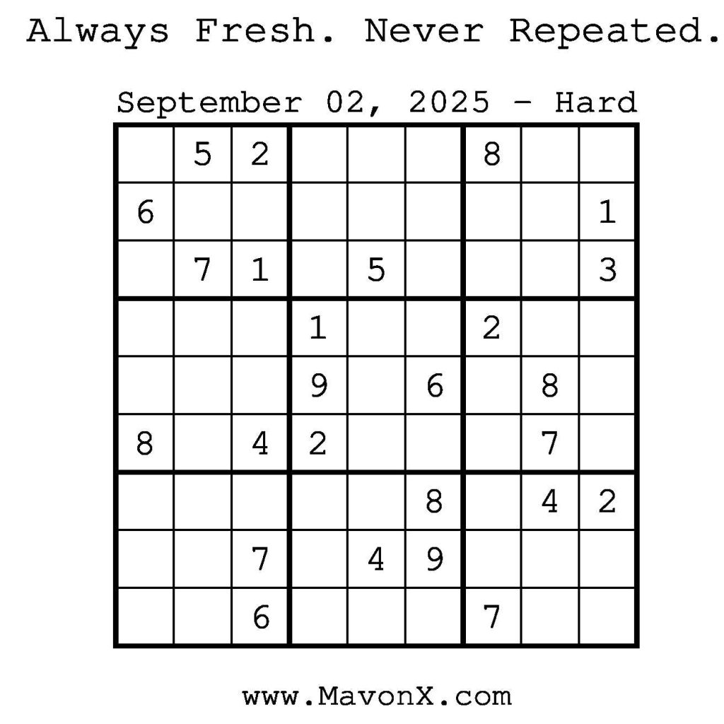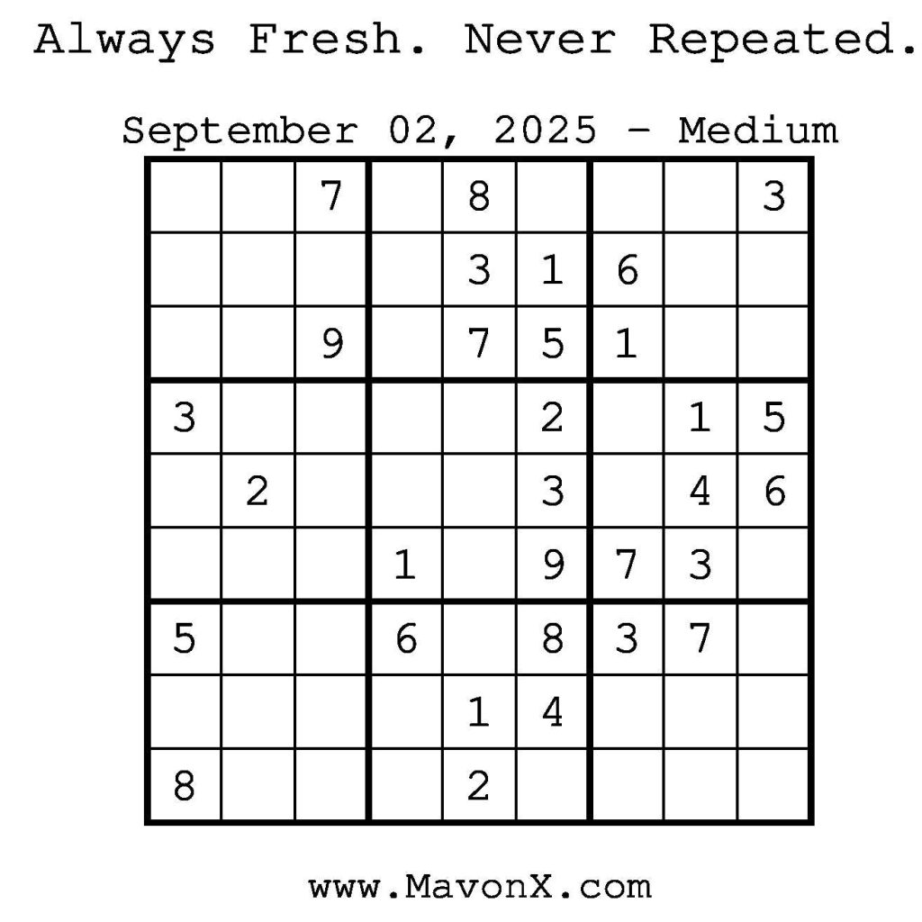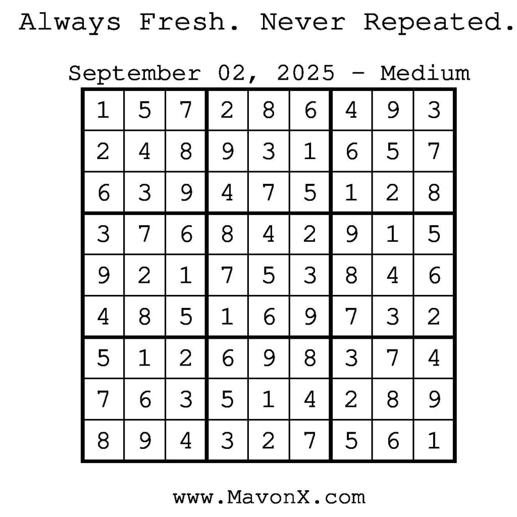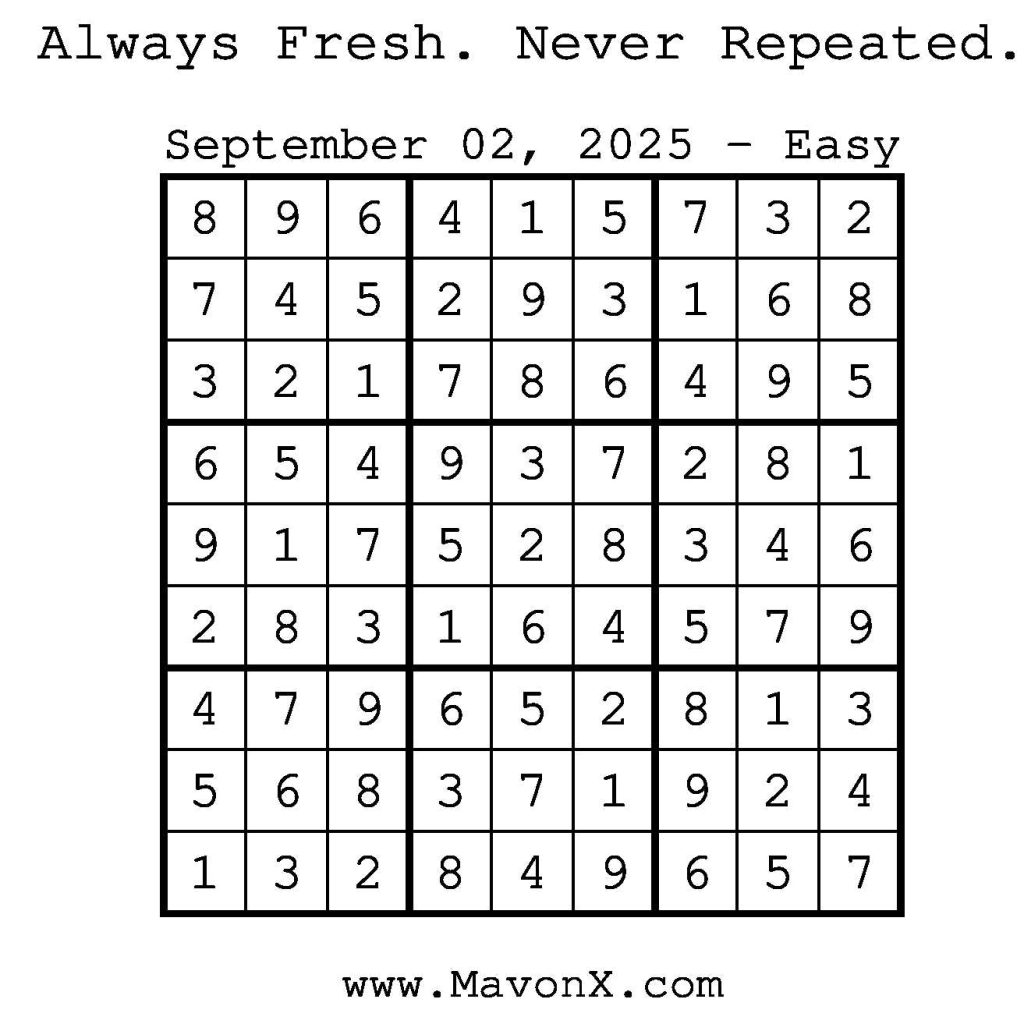 Puzzles of the Day – September 2, 2025 Post author:admin Post published:September 1, 2025 Post category:Free Stuff / Puzzle of the Day / Puzzle of the Day Solutions / Solutions Post comments:0 Comments Check out our books on Amazon! Check out our books on Barnes and Noble! Check out our books on Etsy! Easy Sudoku Coach Link Medium Sudoku Coach Link Hard Sudoku Coach Link Show Solution You Might Also Like Puzzles of the Day – January 6, 2025 January 6, 2025 Puzzles of the Day – October 7, 2024 October 7, 2024 Puzzles of the Day – November 29, 2024 November 28, 2024 Leave a Reply Cancel replyCommentEnter your name or username to comment Enter your email address to comment Enter your website URL (optional) Save my name, email, and website in this browser for the next time I comment.