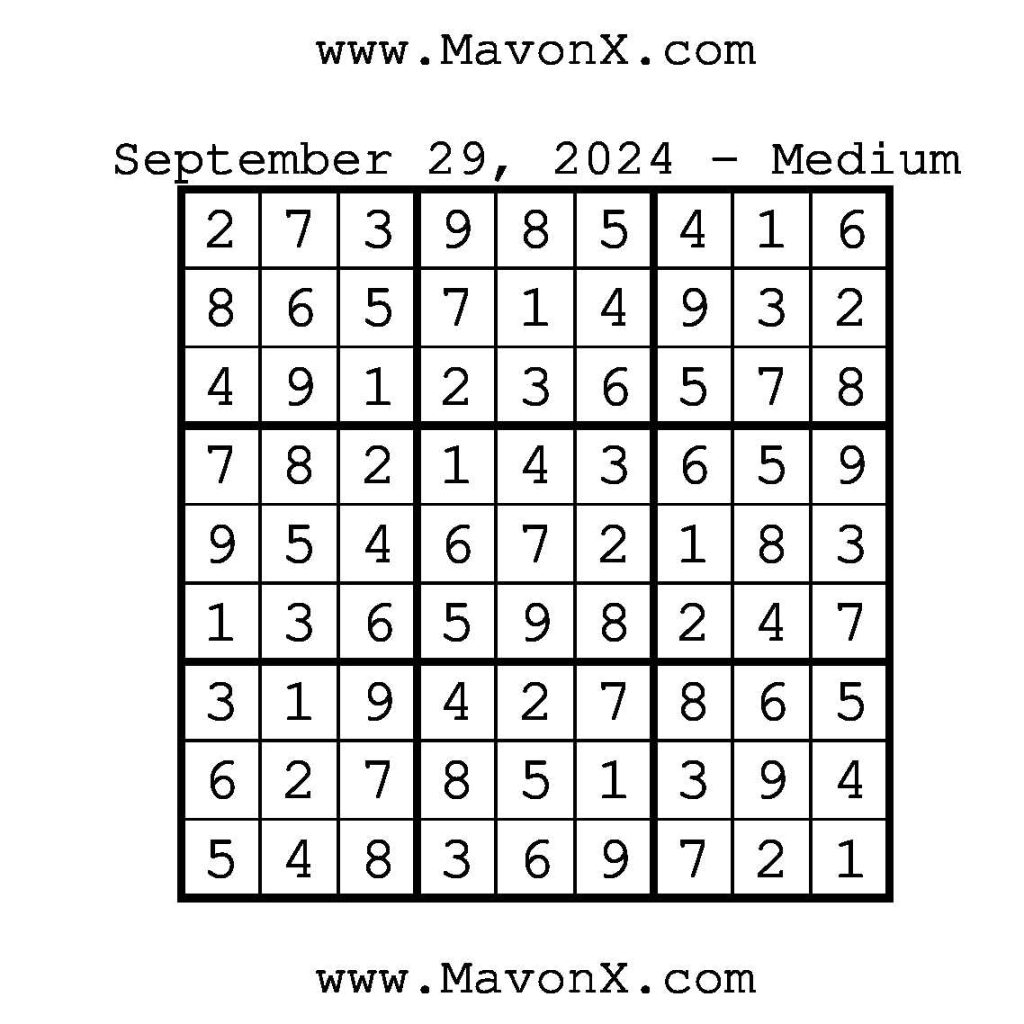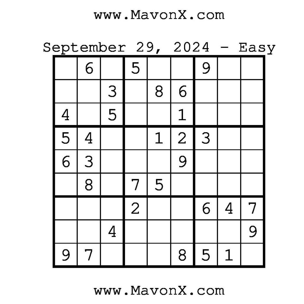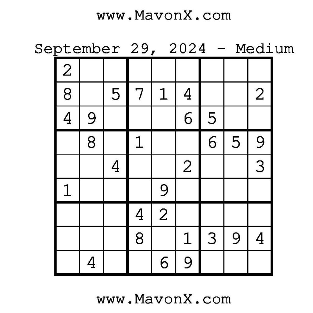 Puzzles of the Day – September 29, 2024 Post author:admin Post published:September 29, 2024 Post category:Free Stuff / Puzzle of the Day / Puzzle of the Day Solutions / Solutions Post comments:0 Comments Check out our books on Amazon!!!!! Easy Sudoku Coach Link Medium Sudoku Coach Link Hard Sudoku Coach Link Show Solution You Might Also Like Puzzles of the Day – July 3, 2025 July 3, 2025 Puzzles of the Day – December 2, 2024 December 1, 2024 Puzzles of the Day – April 22, 2025 April 23, 2025 Leave a Reply Cancel replyCommentEnter your name or username to comment Enter your email address to comment Enter your website URL (optional) Save my name, email, and website in this browser for the next time I comment.