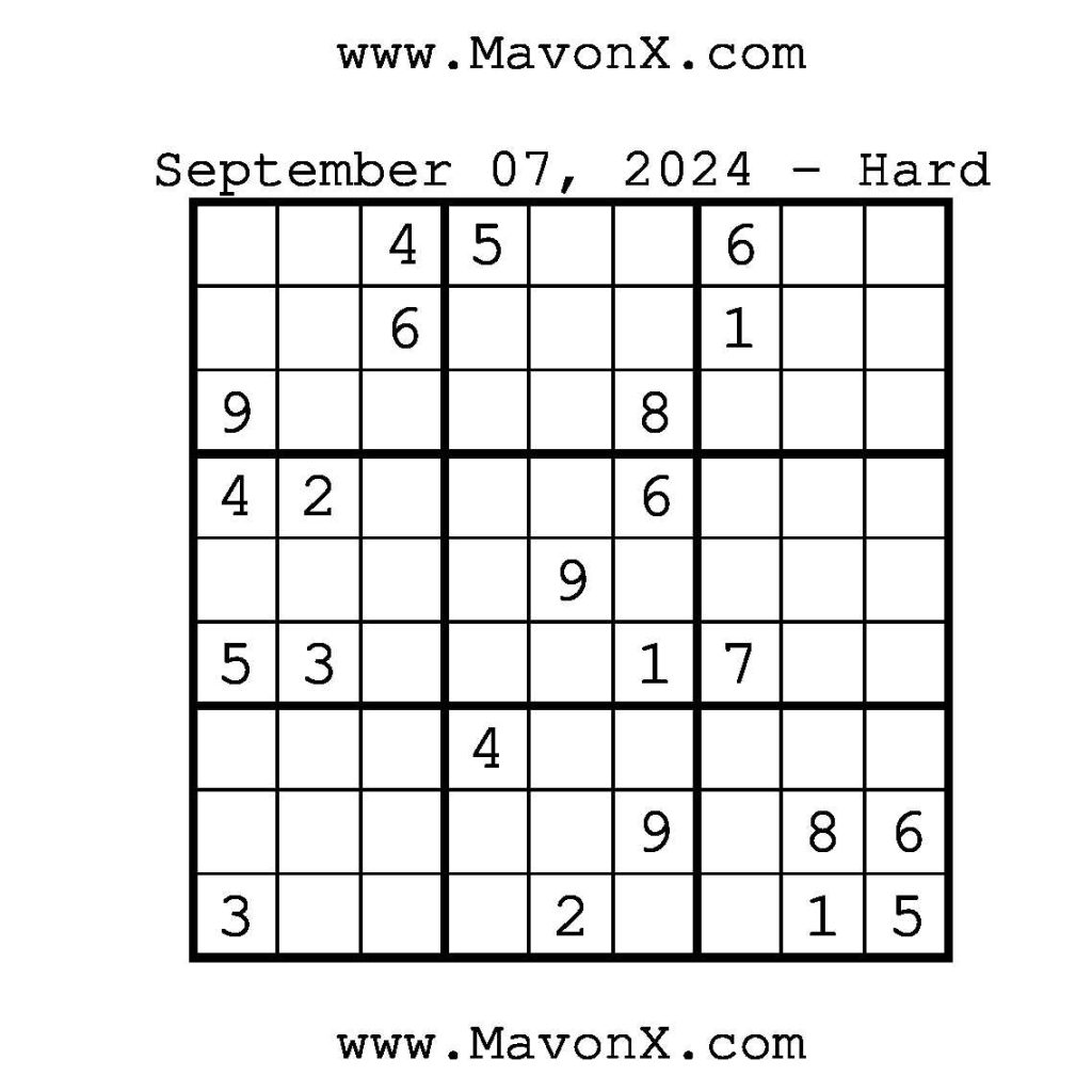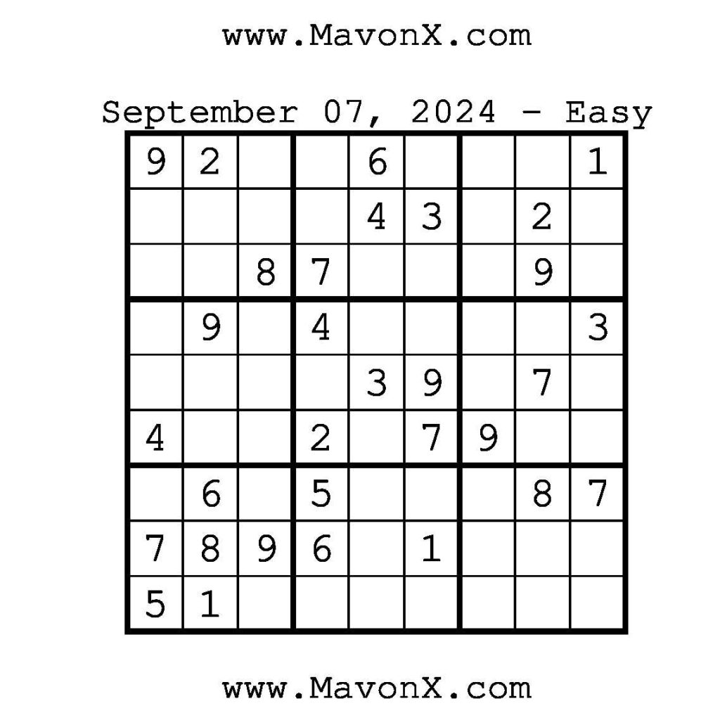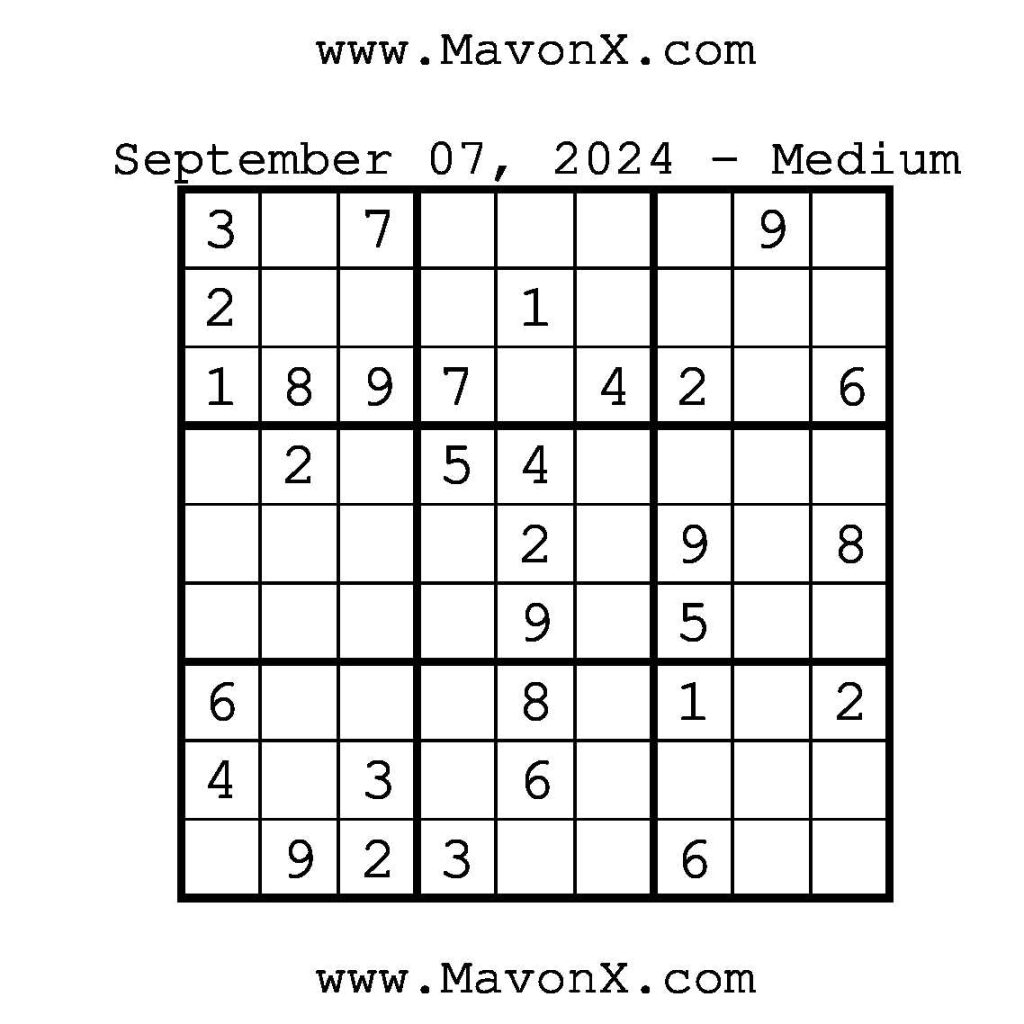 Puzzles of the Day – September 7, 2024 Post author:admin Post published:September 7, 2024 Post category:Free Stuff / Puzzle of the Day / Puzzle of the Day Solutions / Solutions Post comments:0 Comments Check out our books on Amazon!!!!! Easy Sudoku Coach Link Medium Sudoku Coach Link Hard Sudoku Coach Link Show Solution You Might Also Like Puzzles of the Day – April 14, 2025 April 14, 2025 Puzzles of the Day – July 17, 2025 July 17, 2025 Puzzles of the Day – April 24, 2025 April 23, 2025 Leave a Reply Cancel replyCommentEnter your name or username to comment Enter your email address to comment Enter your website URL (optional) Save my name, email, and website in this browser for the next time I comment.